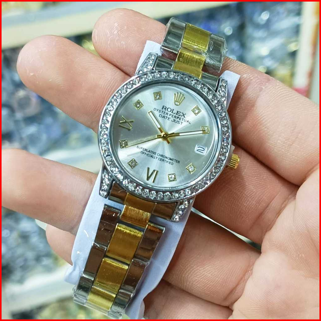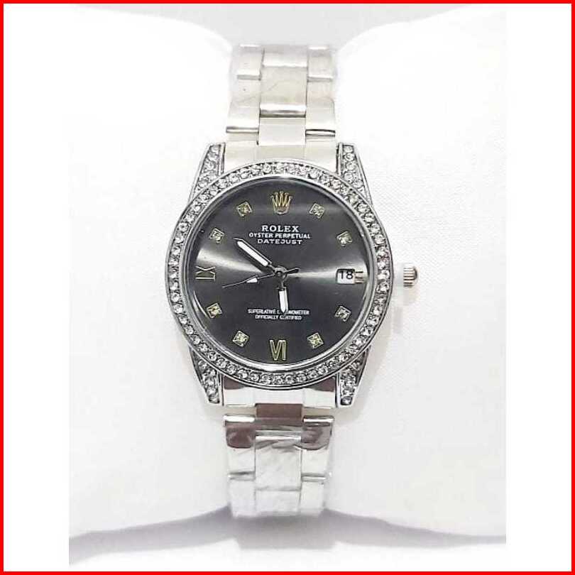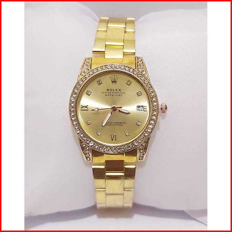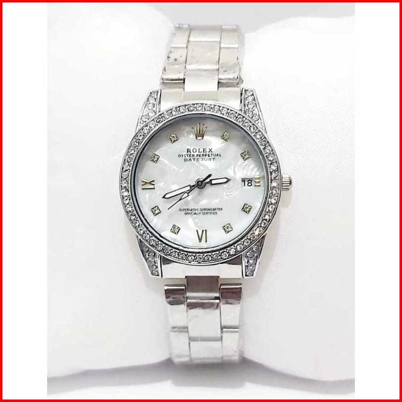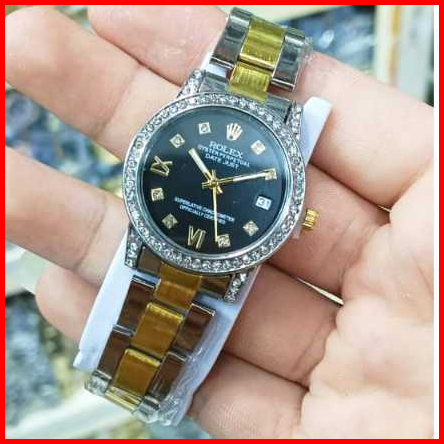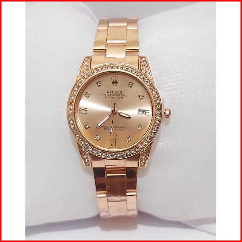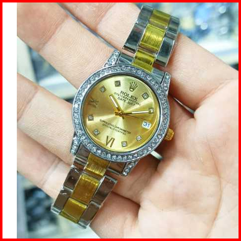 Jam Tangan Wanita Rolex Romawi Rantai Stainless Tanggal Aktif Free Box Analog Quartz Tahan Air