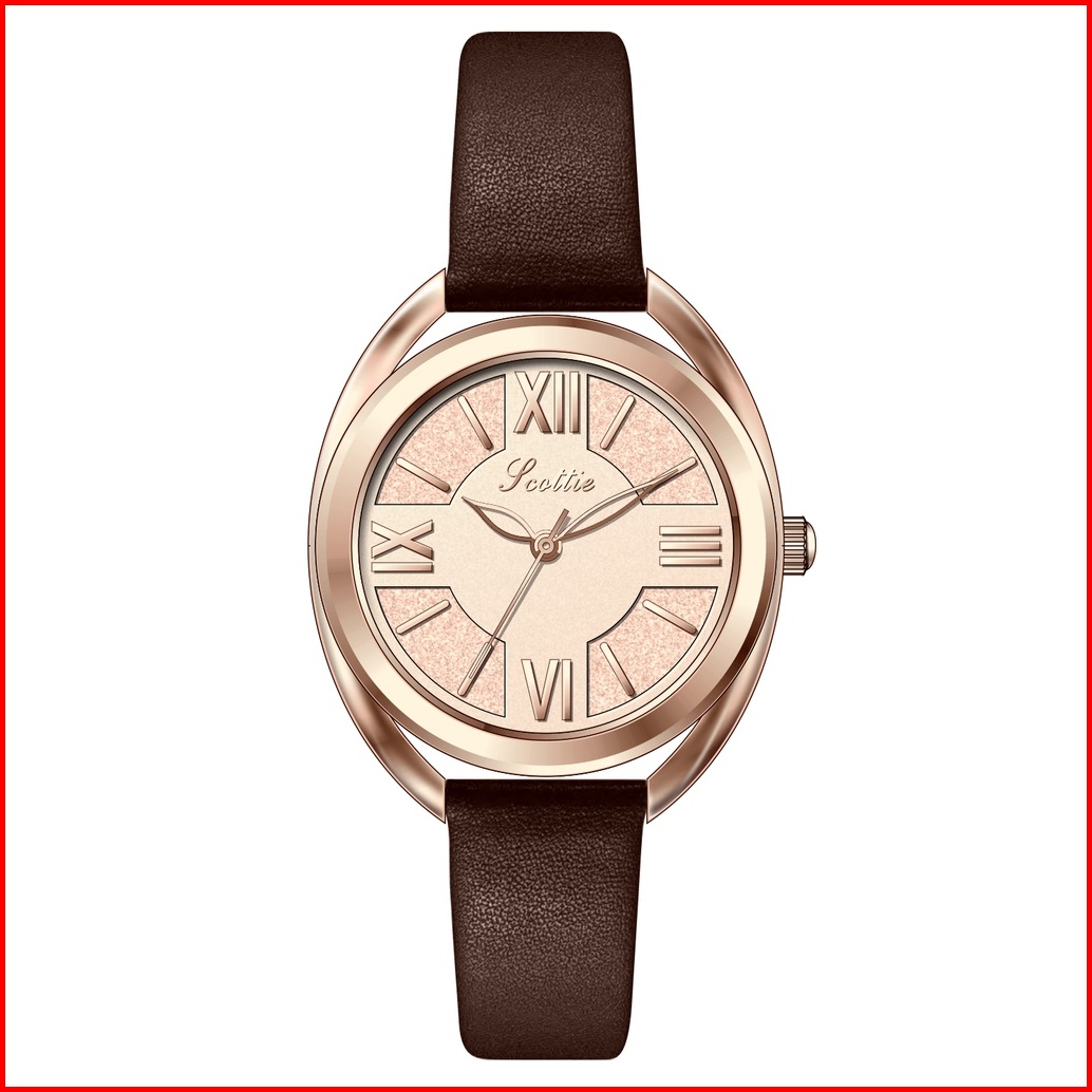 Scottie Jam Tangan Wanita Aguamente Strap Leather Kulit Asli Original Elegant Tahan Air Jam Tangan Cewek
