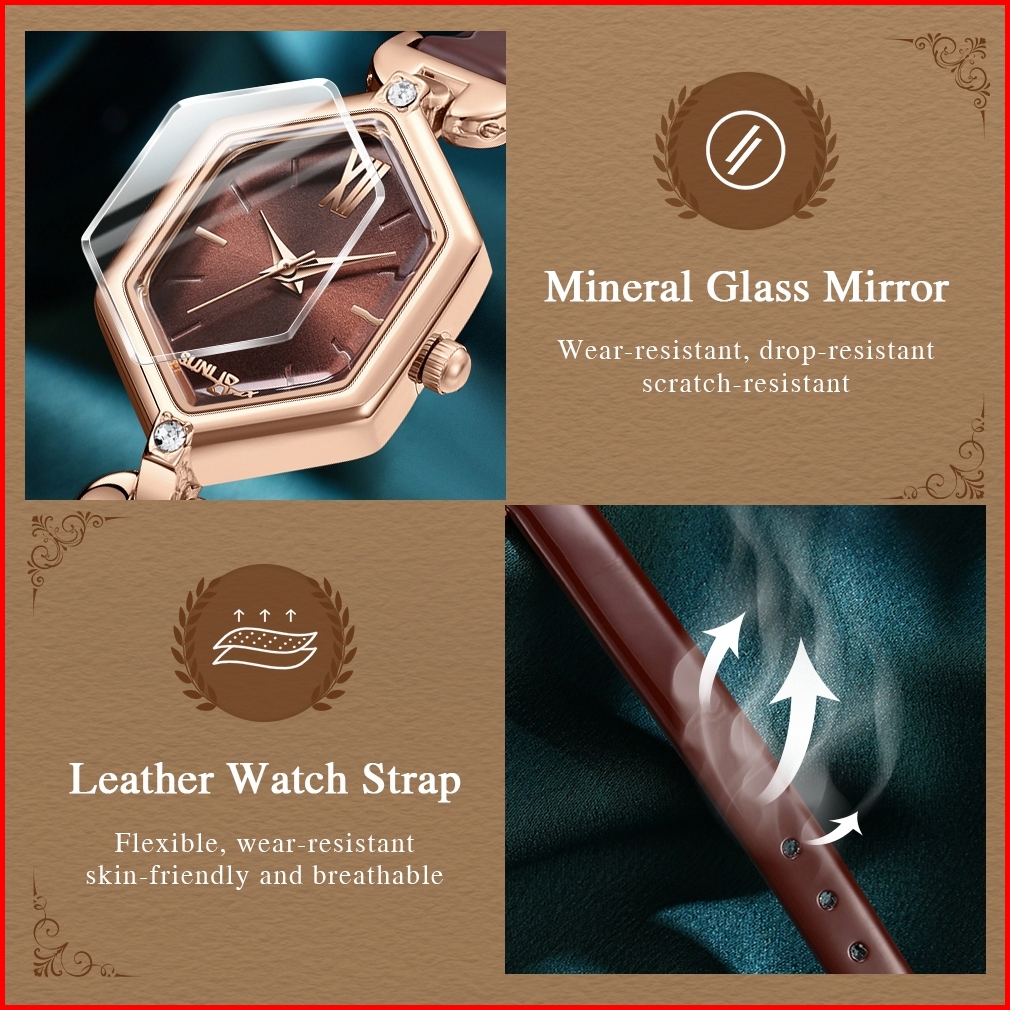 Sunlifex Jam Tangan Wanita Anti Air Kuarsa Elegan Tali Kulit Jam Tangan Cewek Original 5995