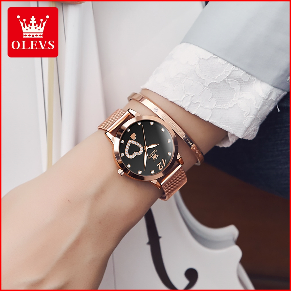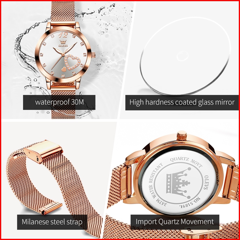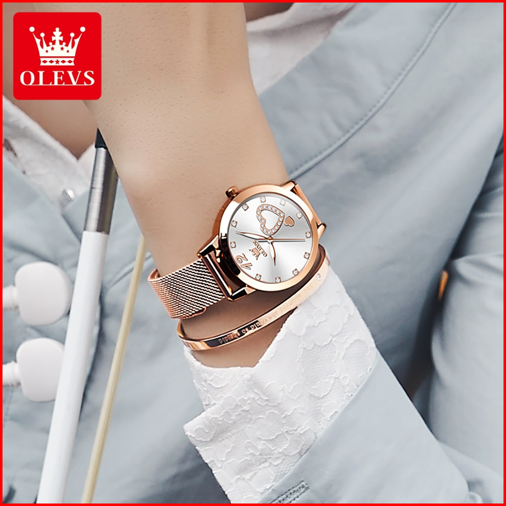 Olevs Jam Tangan Wanita Anti Air Original Branded Rantai Kecil Korea Elegan Mewah Rose Tahan Air Analog Waterproof Quart