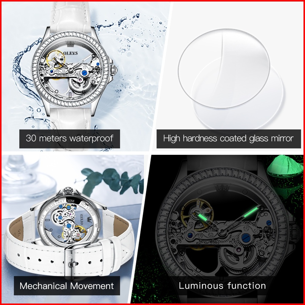 Olevs Jam Tangan Automatic Wanita Original Anti Air Fashion Kecil Transparan Mewah Casual Terbaru Watch Women