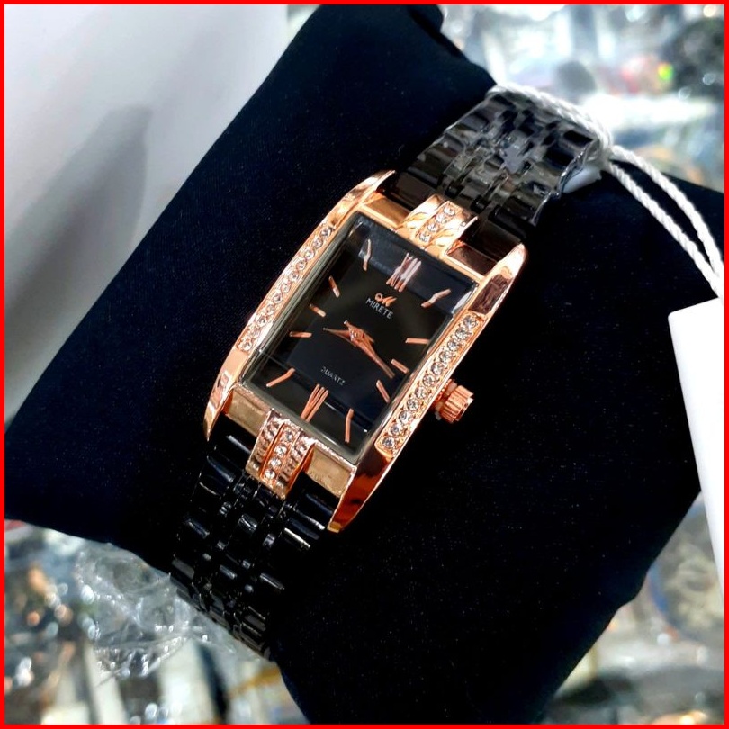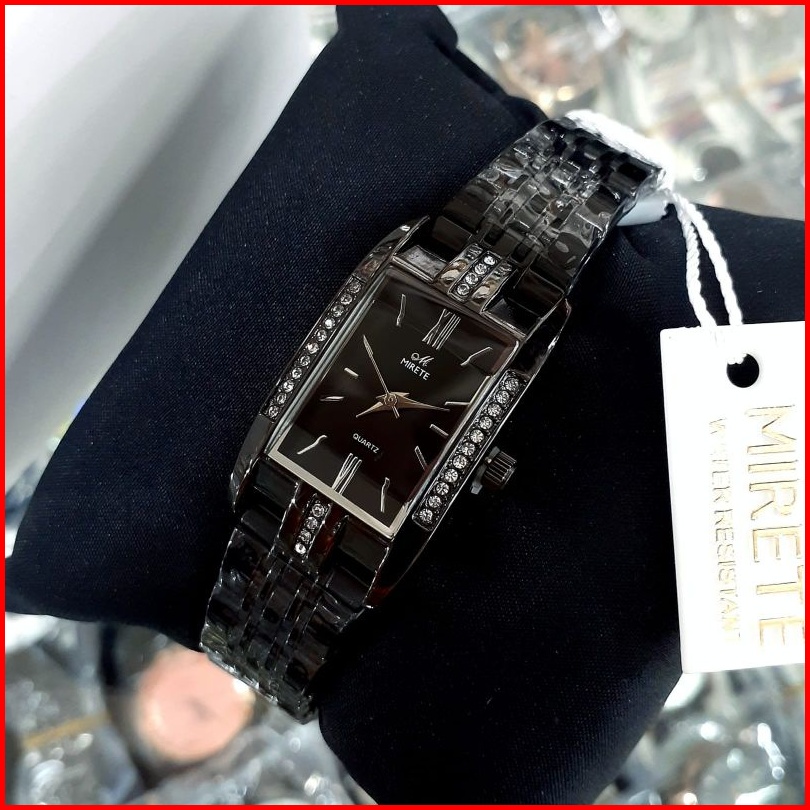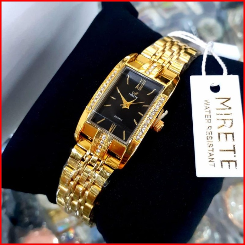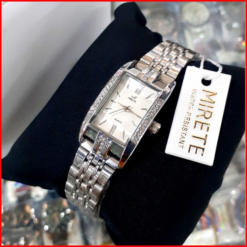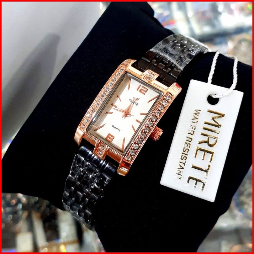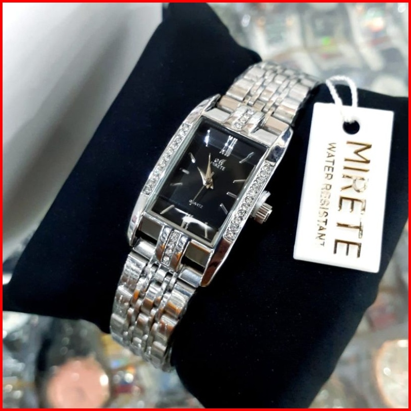 Mirete New Jam Tangan Wanita Petak Permata Super Mewah Rantai Stainliss Stell Water Resistan Analog Quarsa Terlaris Jam