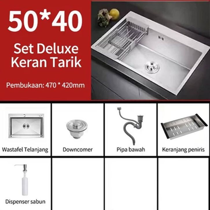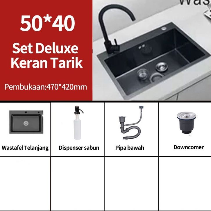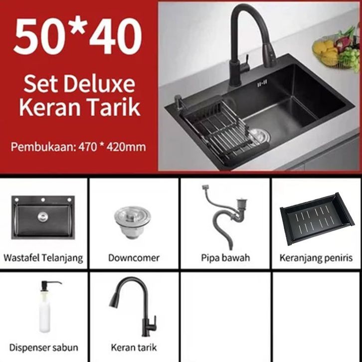 [Star]Wastafel Cuci Piring Full Set 1 Paket Kitchen Sink Hitam/Perak Wastafel Cuci Piring Stainless Gratis Ongkir Murah