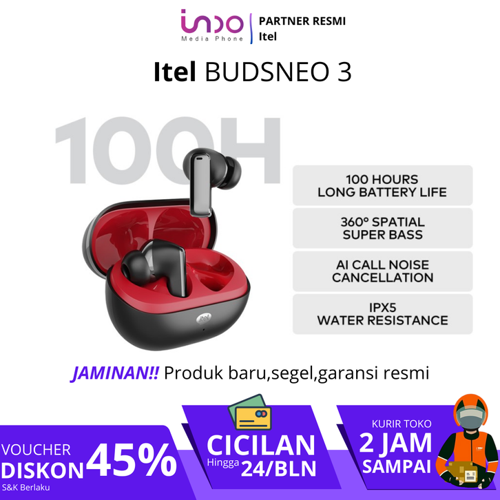 Itel Earbuds Budsneo3 TWS True Wireless Bluetooth Earphone TWS Mini Earbuds Powerful