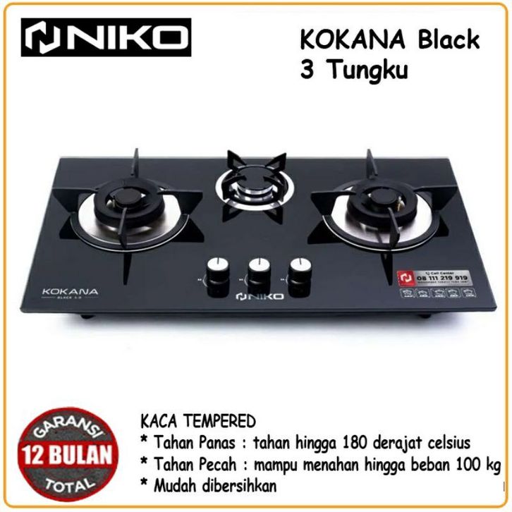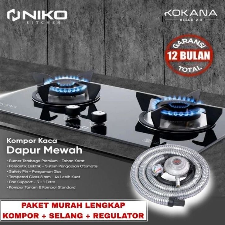 Niko Kokana Black 2.0 - 3.0 Kompor Gas Tanam 2 tungku dan 3 tungku KACA