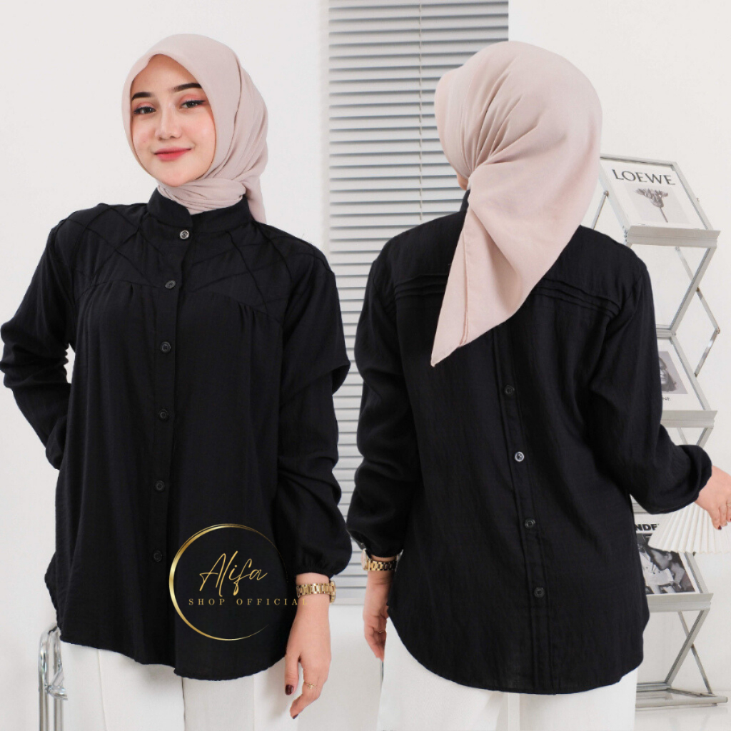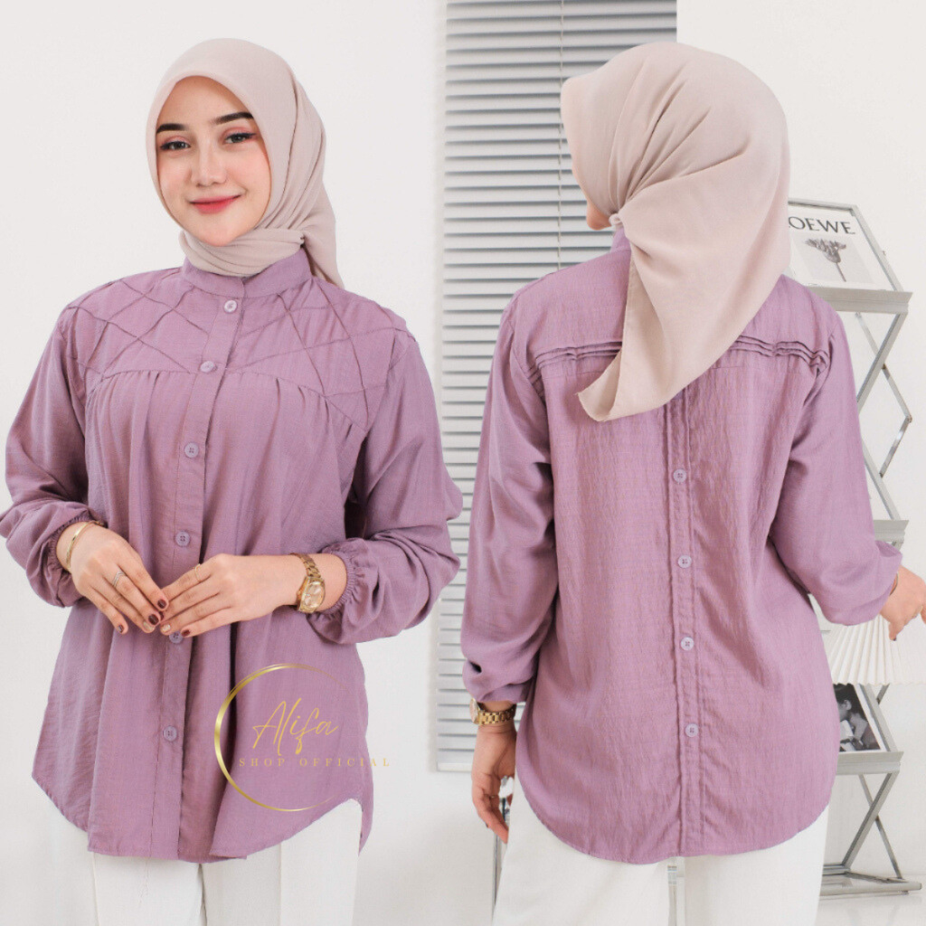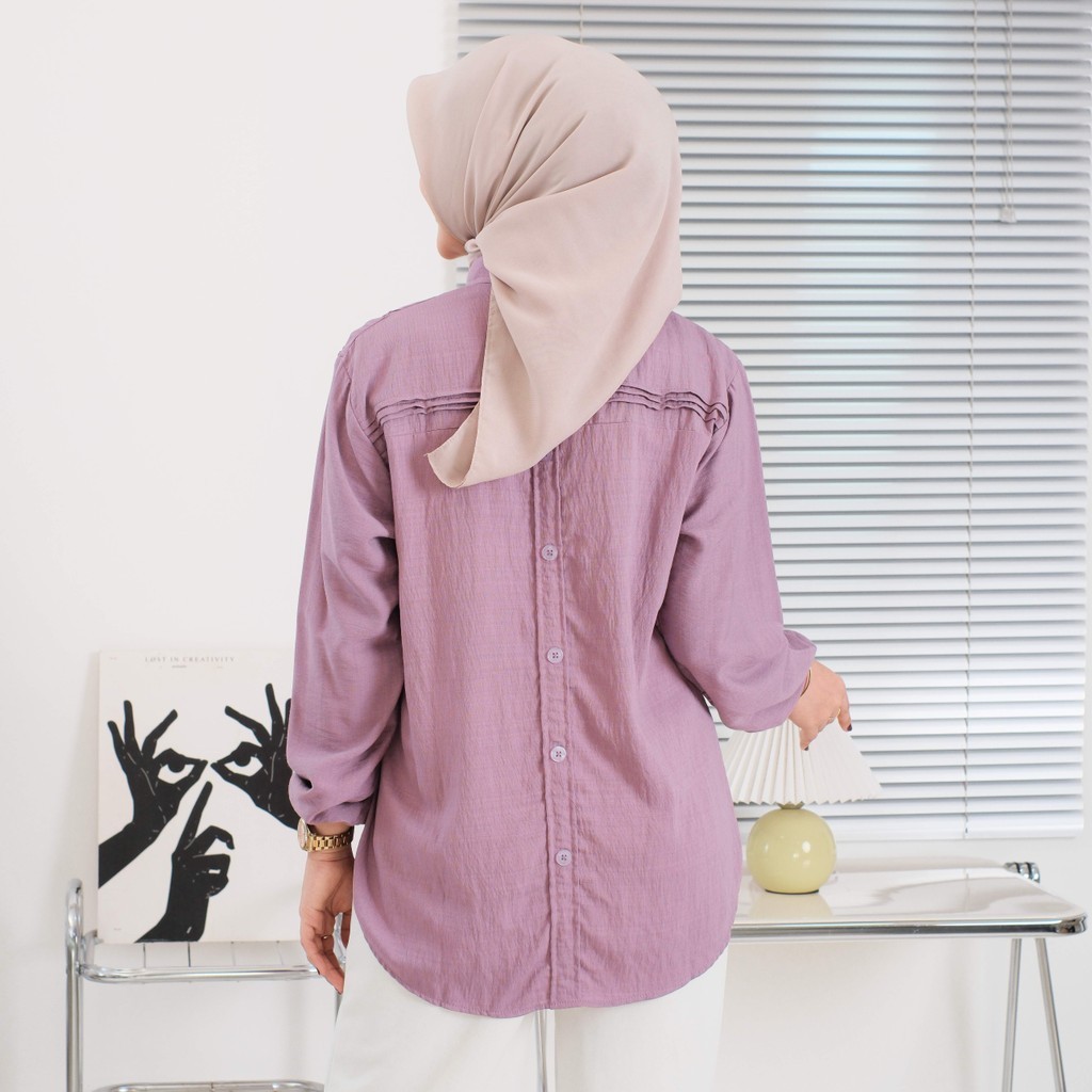 (Gratis Ongkir) Laura Shirt Atasan Kemeja Wanita Oversize Polo Linen LD 120