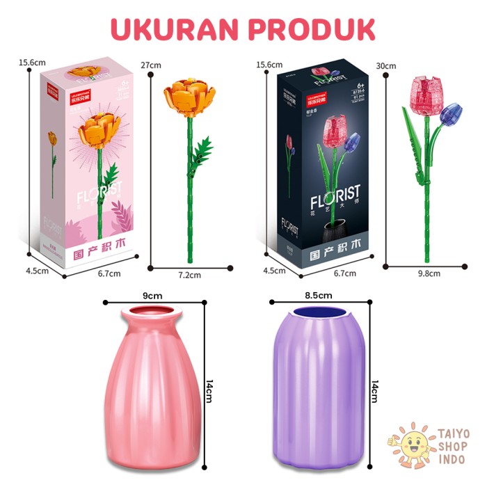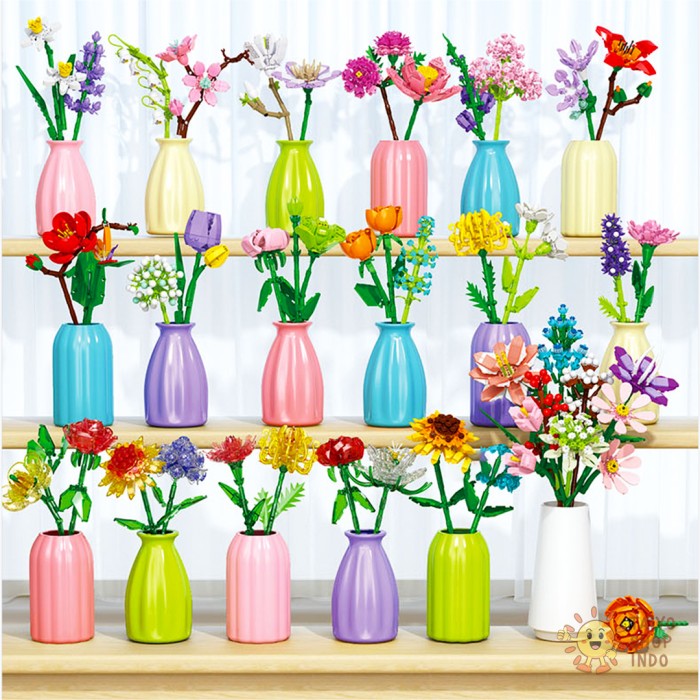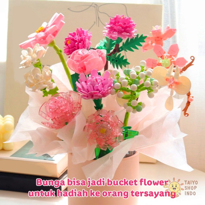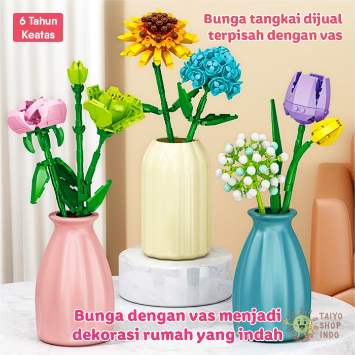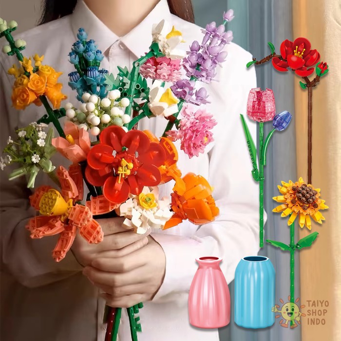 TAIYO MAINAN MINI BLOCKS FLORIST FLOWER TANGKAI VAS POT BUNGA BLOK BRICKS BOUQUET BUKET DEKORASI - 9093-2