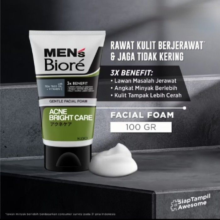 Biore Men's Acne Bright Care / Acne SkinBiore Men's Acne Bright Care / care Gentle Facial Foam Sabun Cuci Muka Pria 100g