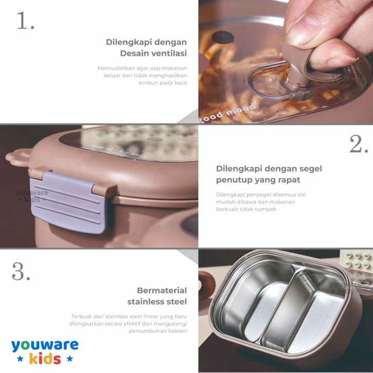 Youware - Keiko Lunch Box / Wadah / Kotak Bekal Aesthethic Tahan Panas BPA Free 950ML