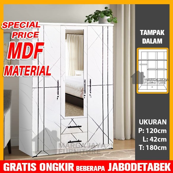 Hitam Putih, Full Putih, Full Cermin, 2 Pintu, MDF Putih, MDF Marmer, MDF Natural