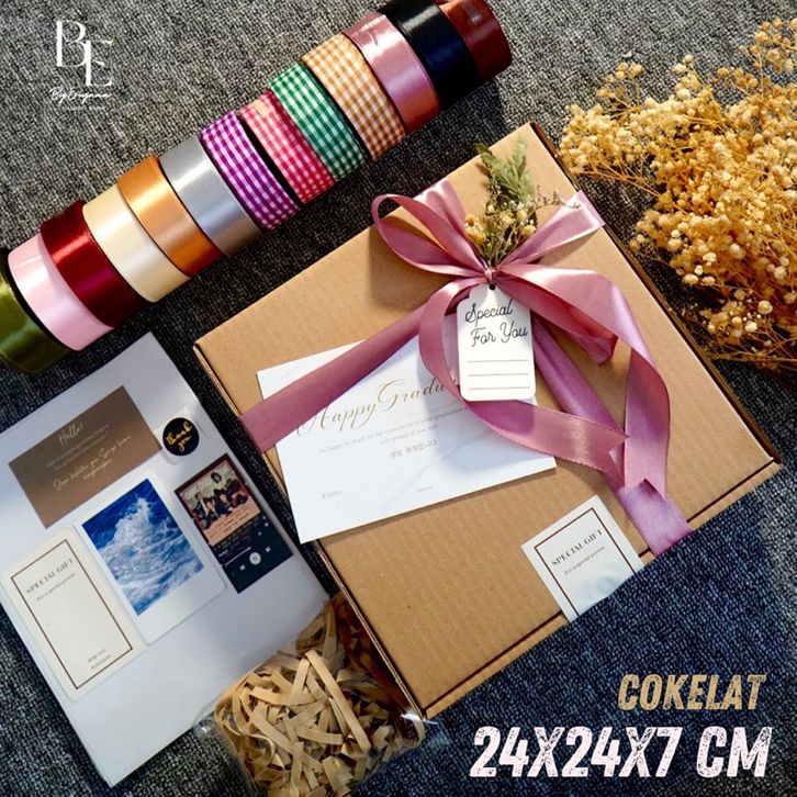 Box Hampers Gift Box Kotak Kado Ulang Tahun Kardus Hitam Aesthetic Packing Dus Set Hadiah Unik Bungkus DIY Pita Kartu
