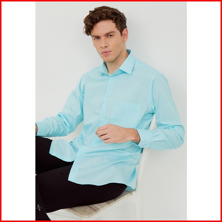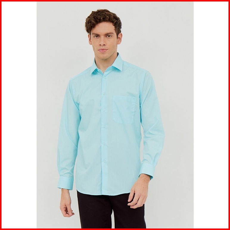 Alisan Kemeja Lengan Panjang Polos Slimfit Plssfls Aqua1