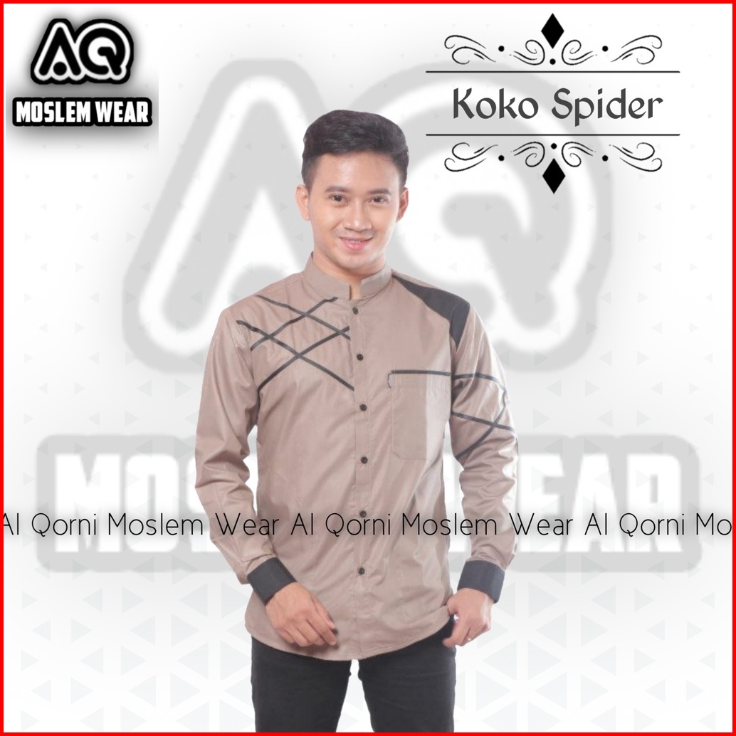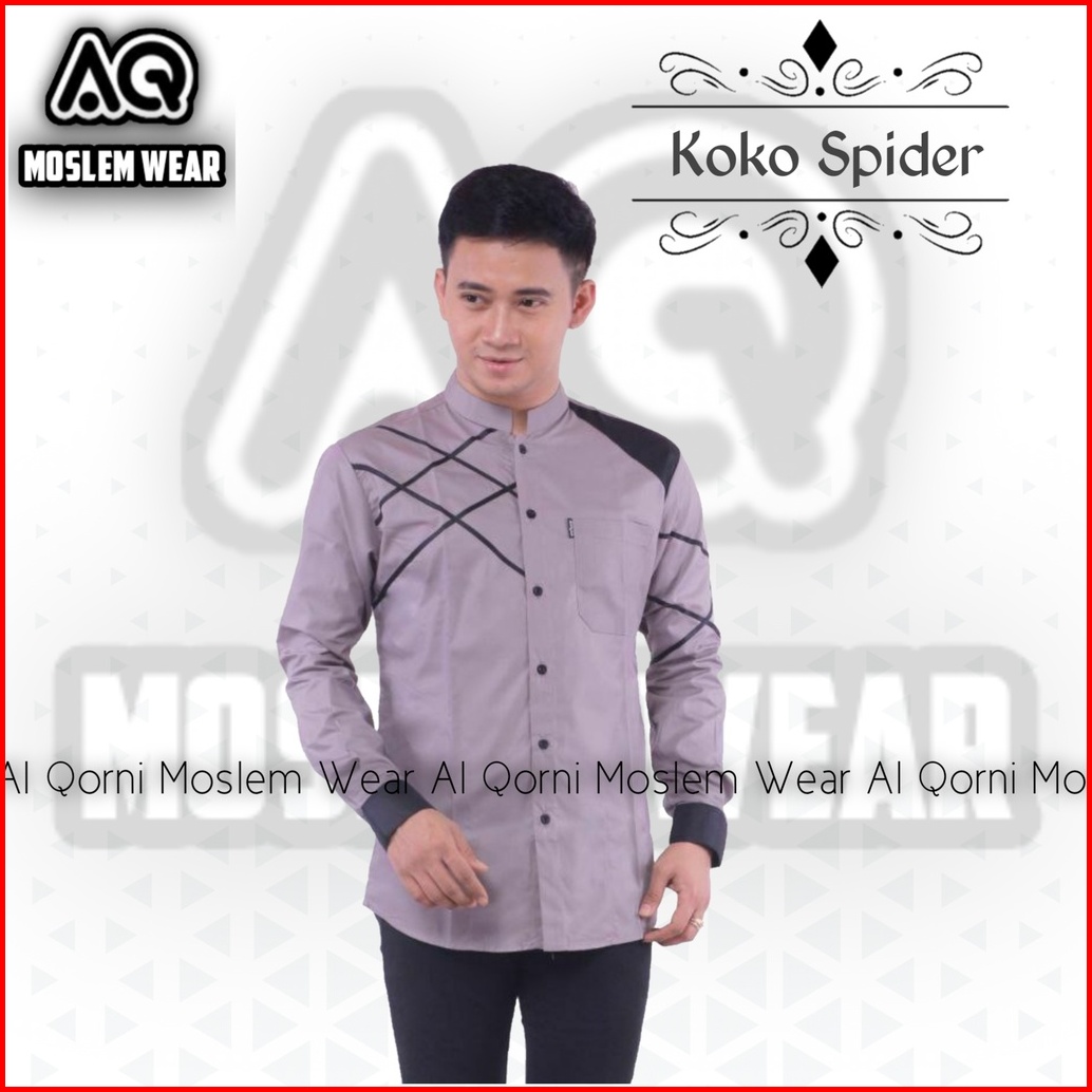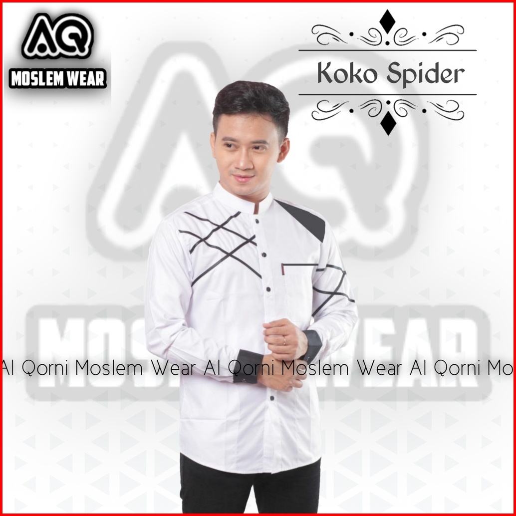 Baju Koko Pria Hadroh Kombinasi Motif Jaring Laba Laba Lengan Panjang Warna Putih S M L Xl