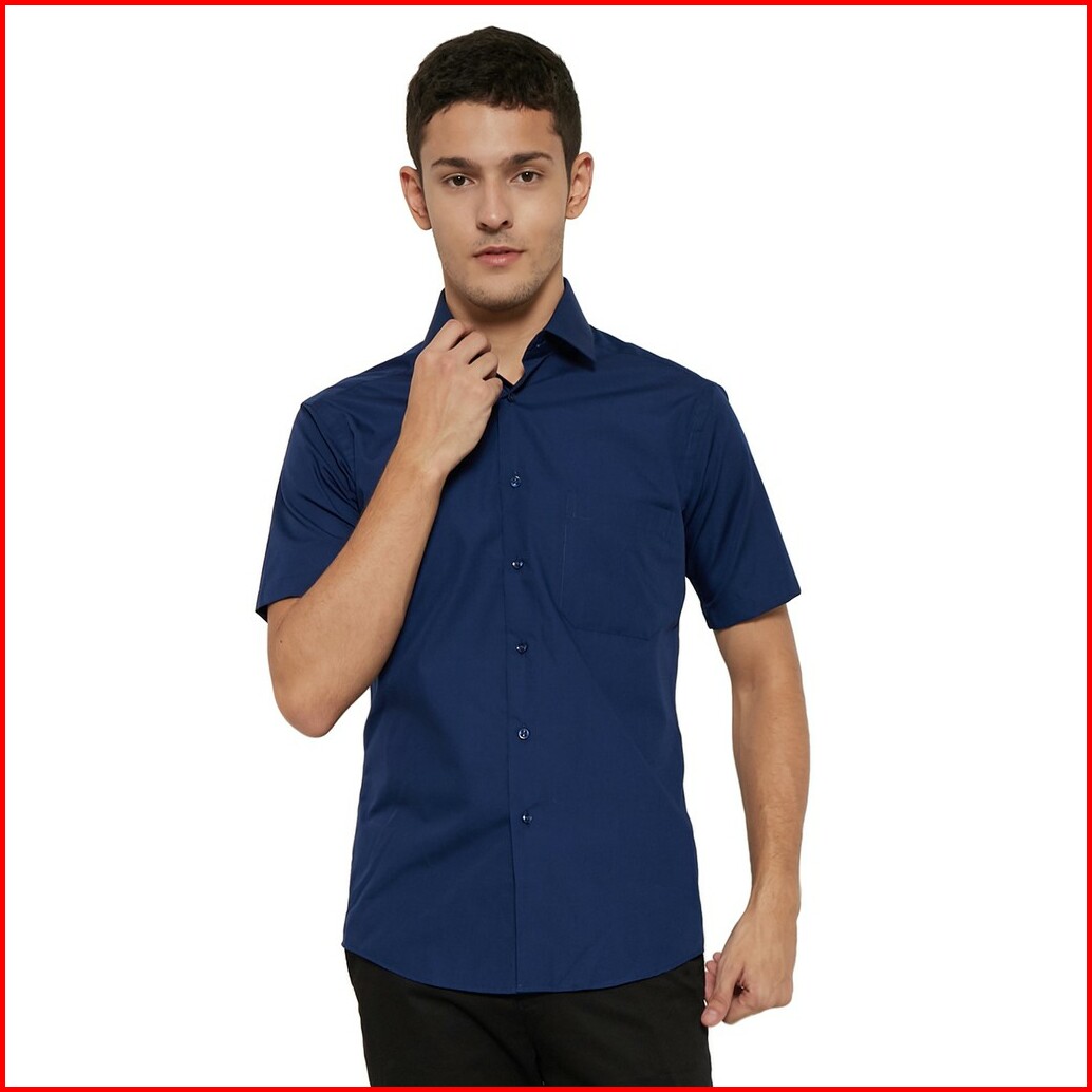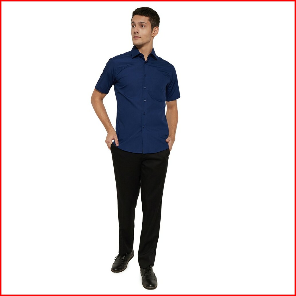 Alisan Kemeja Lengan Pendek Polos Slimfit Plssfss Biru 7