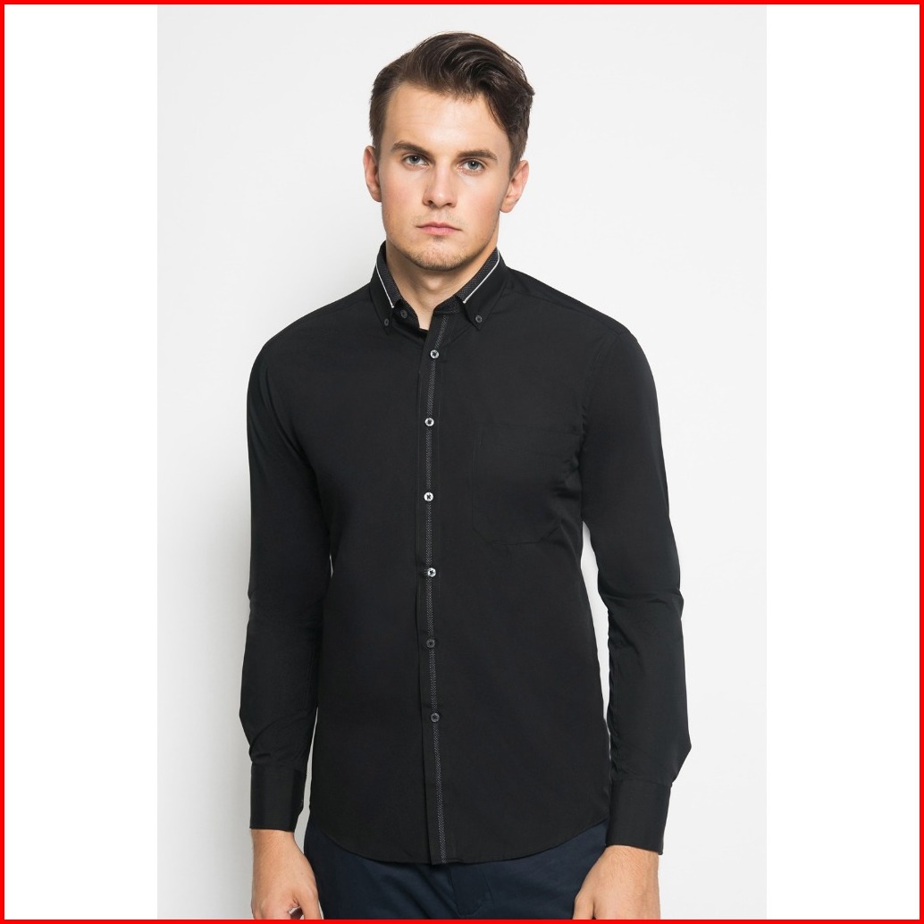 Alisan Kemeja Lengan Panjang Polos Spesial Slimfit Pls10262ls Hitam