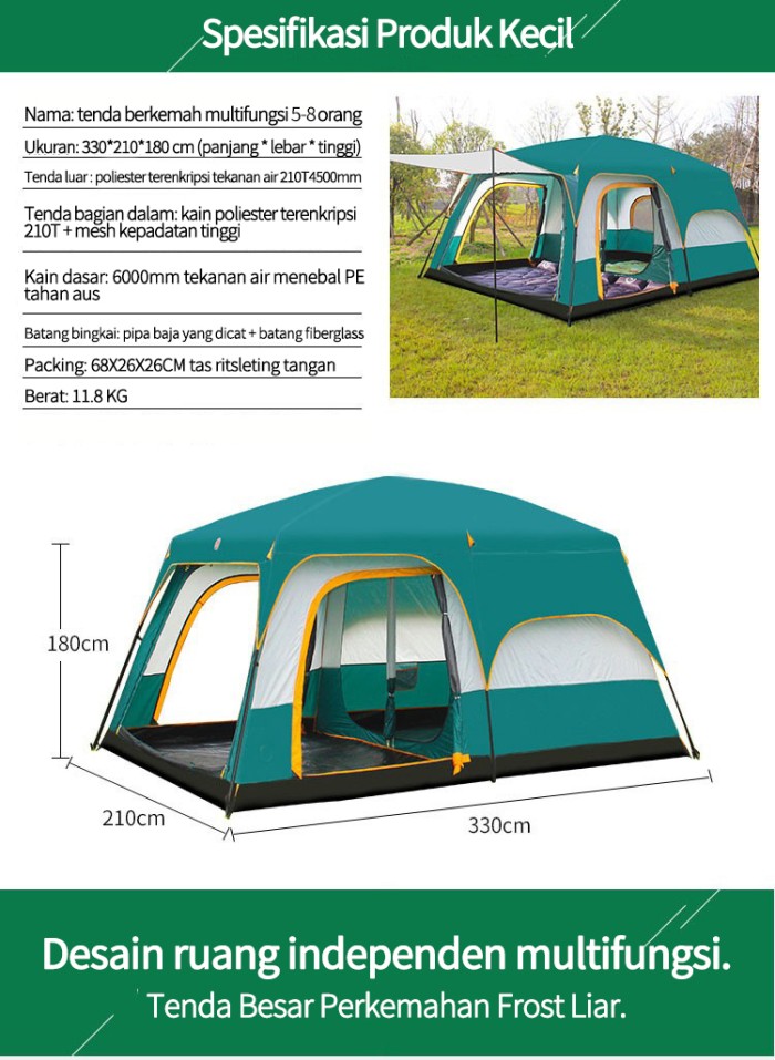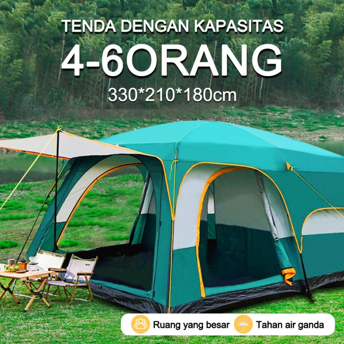 TENDA CAMPING 4-6 ORANG 3.3✖2.1✖1.8M PORTABLE WATERPROOF CAMPING TENT - 4-6 ORANG