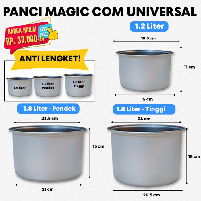 PANCI TEFLON RICE COOKER MAGIC COM 1,2 1,8 LITER RENDAH PENDEK TINGGI - 1,8 L PENDEK