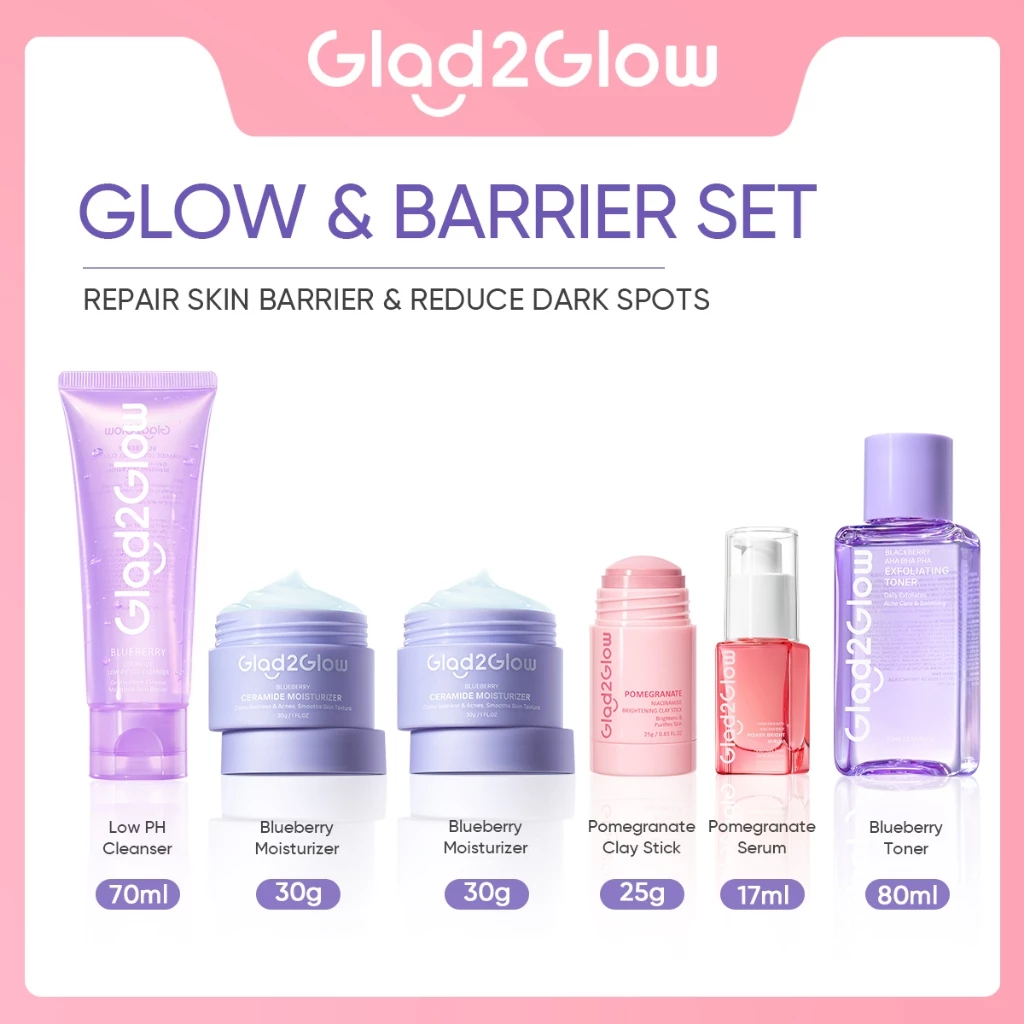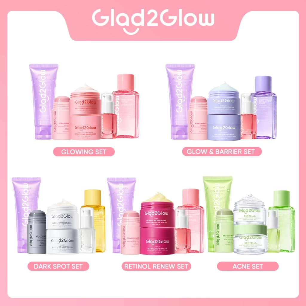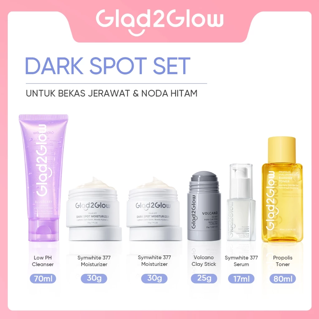 SPECIAL BUNDLE 6in1 Glad2Glow 6pcs Paket Skincare Moisturizer Serum Clay Mask Face Wash Toner-ACNE KIT GLOWING KIT Dark