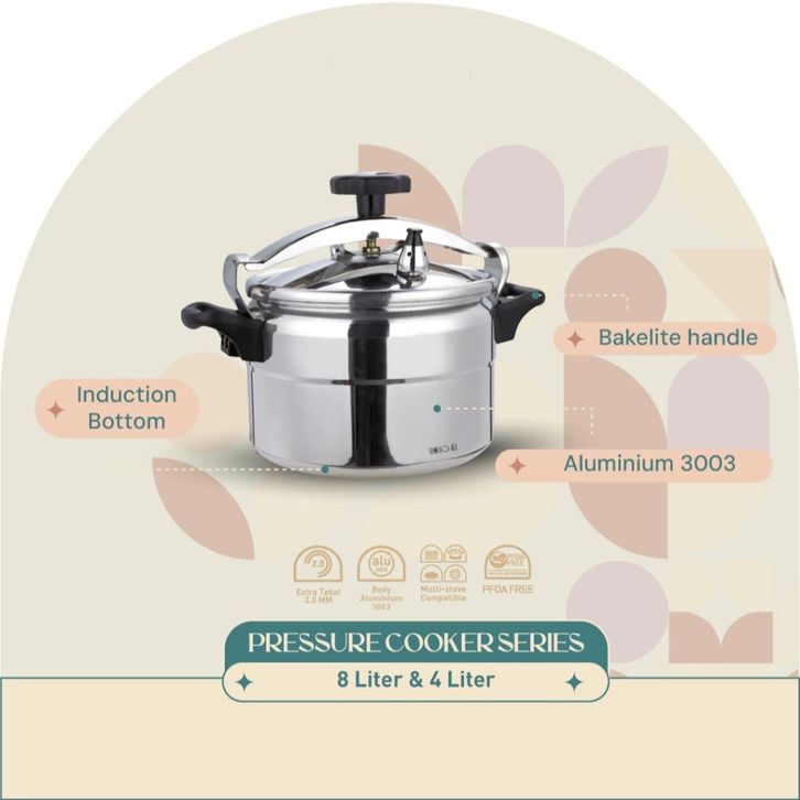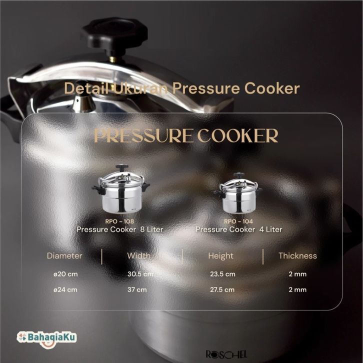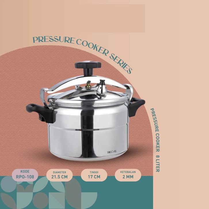 Roschel Pressure Cooker High Grade Aluminium 3003 Panci Presto 4 Liter / 8 Liter Induksi RPO-104 / RPO-108