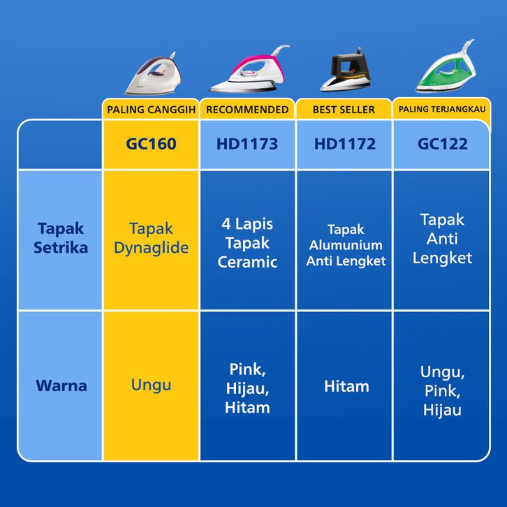 Philips Official Store - Setrika Kering Afinia GC160/27 Philip Original Gosokan Baju Canggih Tapak DynaGlide Terbaik