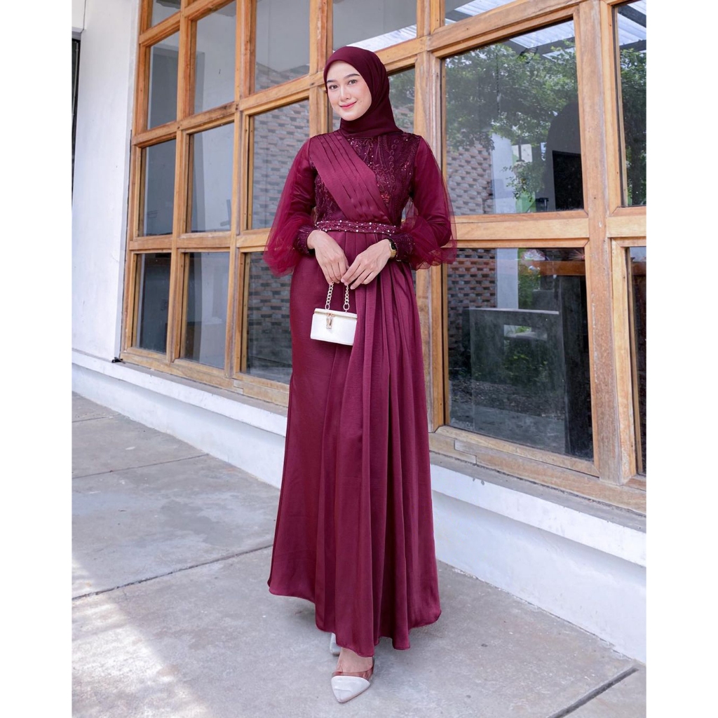 ( RAMADHAN SALE ) Dress Brukat Tille Premium Pesta Terbaru Gamis Pesta Mewah Bahan Maxmara Mix Brokat