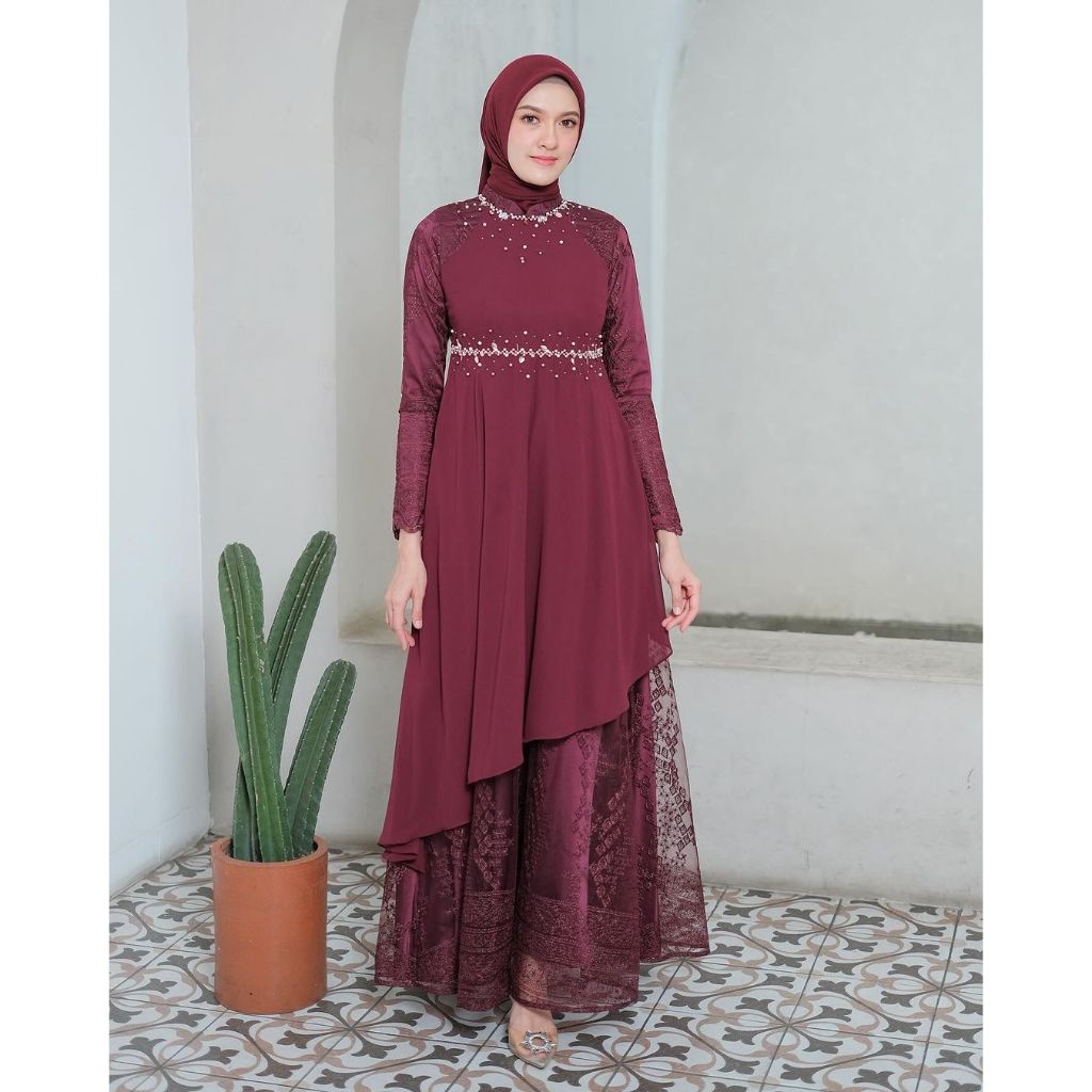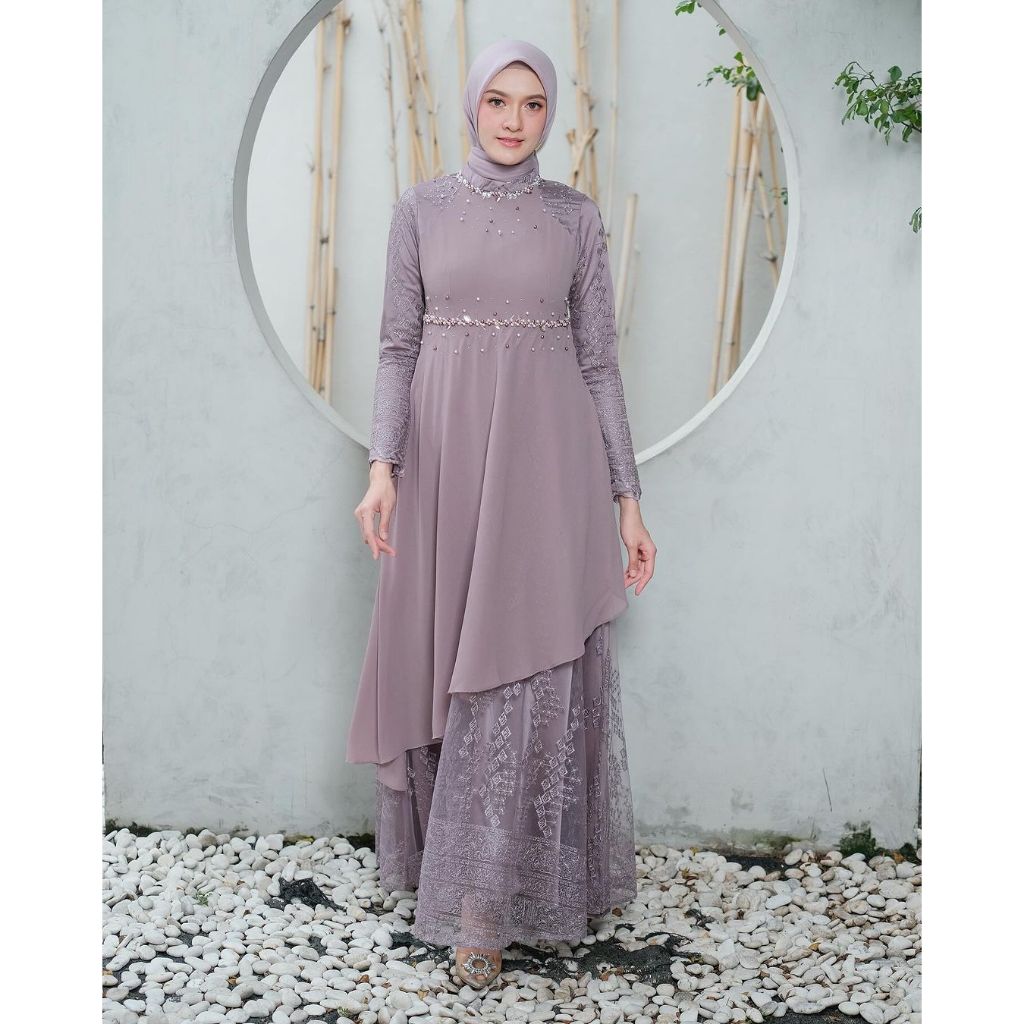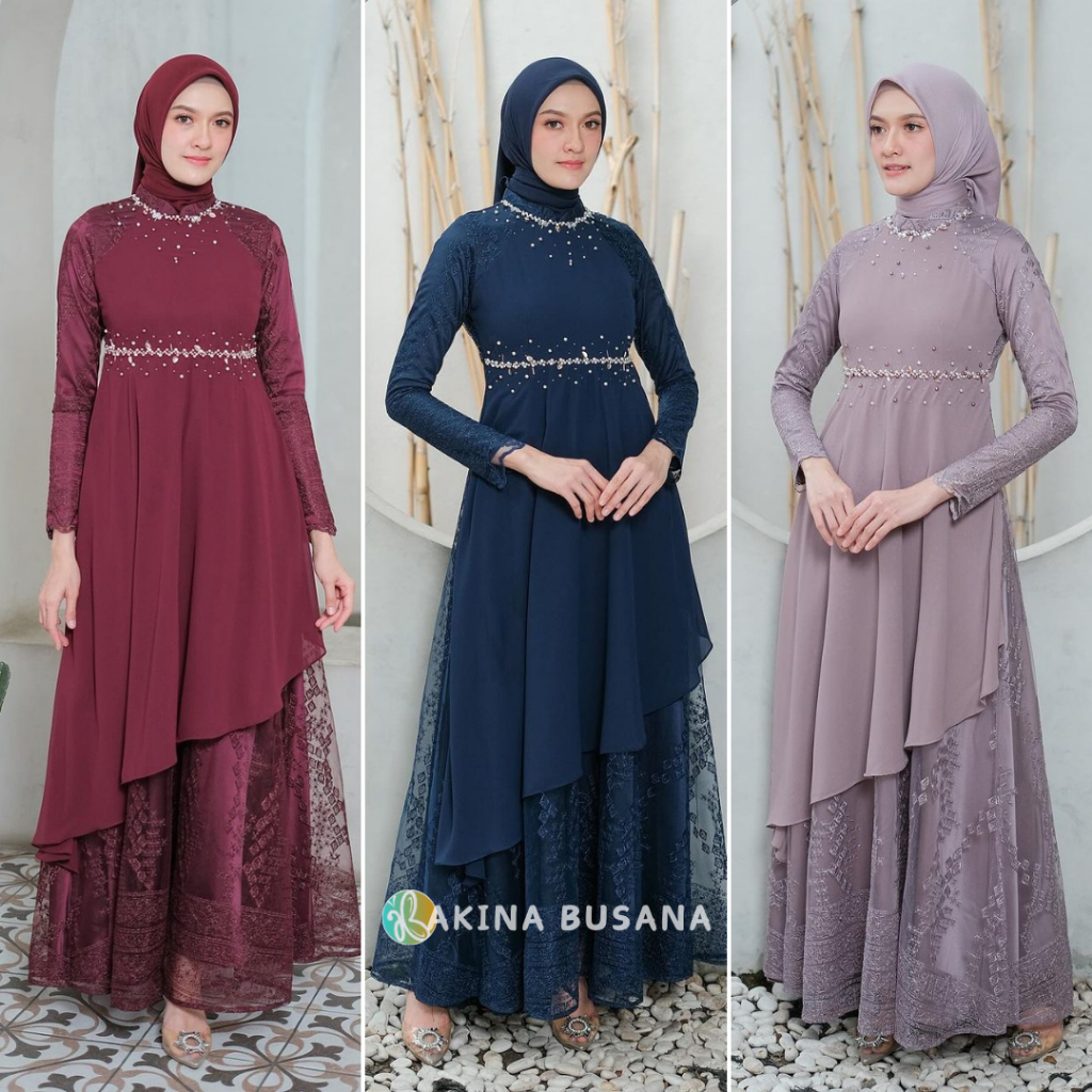 ( RAMADHAN SALE ) Rena Dress Brukat Tille Gamis Pesta Modern Terbaru Wanita Kondangan Lamaran Lebaran