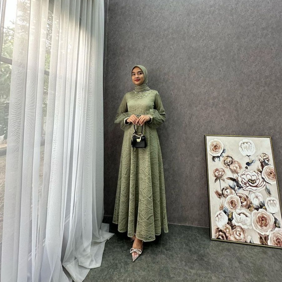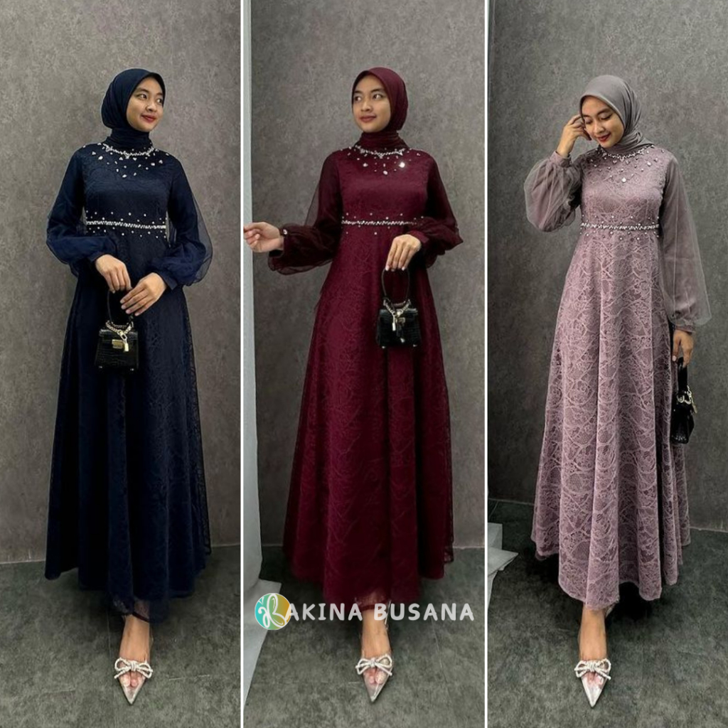 ( RAMADHAN SALE )Dress Exclusive Gamis Lebaran Terbaru Dress Kondangan Gamis Brukat Maxi Pesta Lamaran Tunangan Kekinian