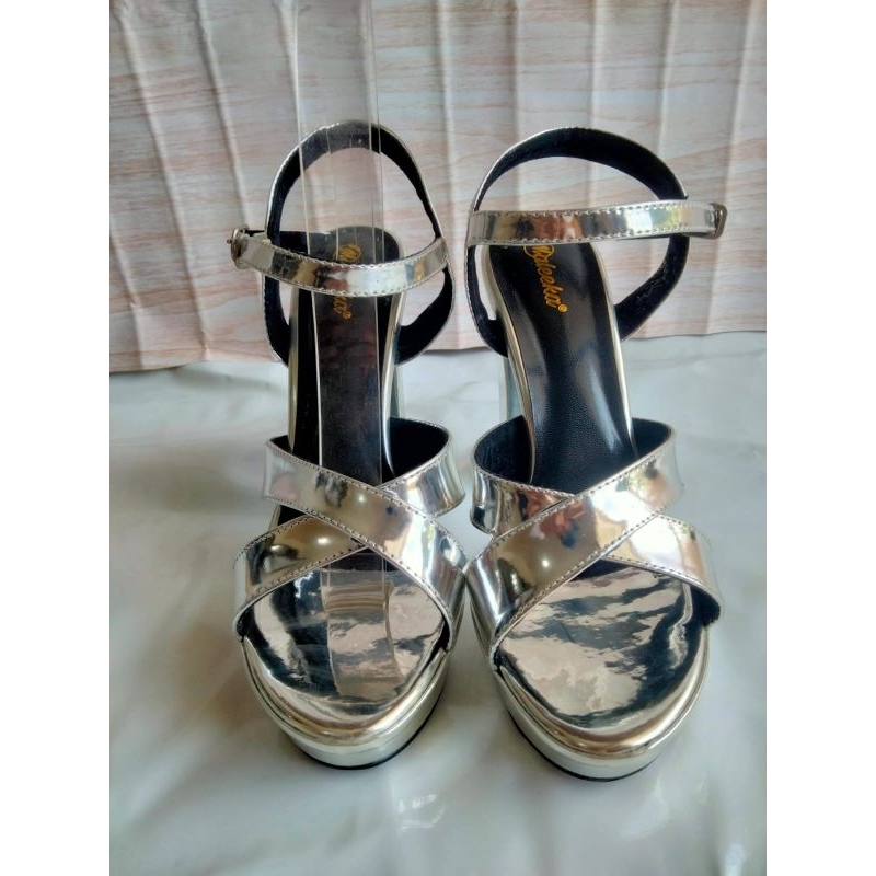 [PROMO] sandal high heels wanita 13cm tali silang glossy premium