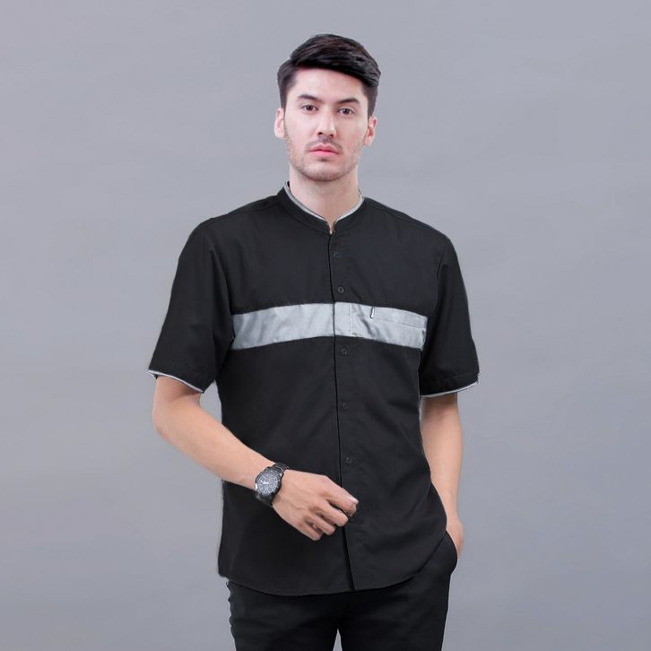 Baju Koko Pria Dewasa Lengan Pendek Motif Hanif Original Elrumi Warna Hitam