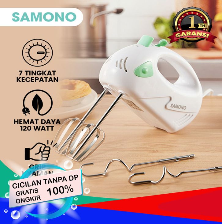 TERLARIS SAMONO Hand Mixer 7 Tingkat Kecepatan Pengaduk Adonan Kue Garansi Resmi 1 Tahun SW-HM120