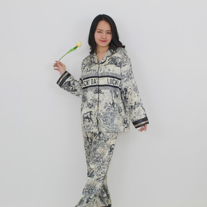 PROMO *PREMIUM* YX37 Lucky Day Piyama Satin Powysuit Korea Baju Tidur Wanita Lengan Panjang Celana Panjang lembut