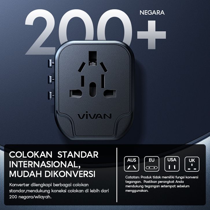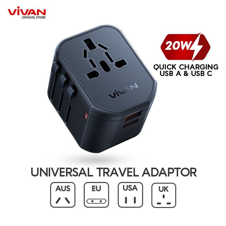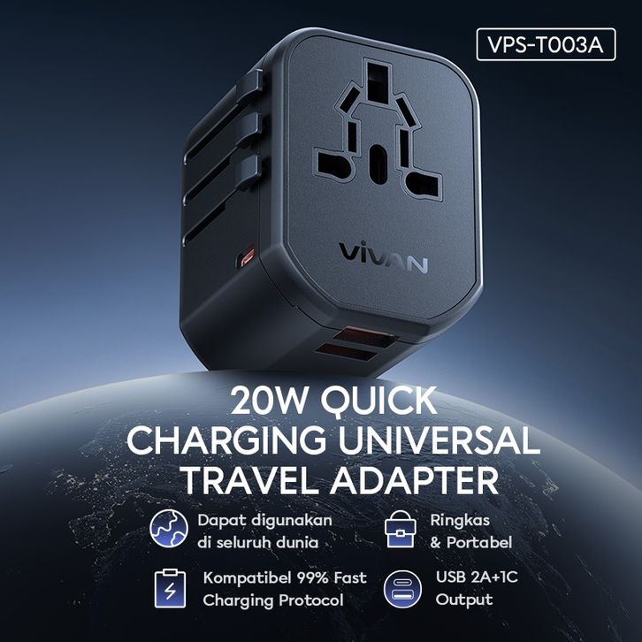 Promo VIVAN Power Adapter Universal 20W VPS-T003A USB Type-C Multi-country / Travel Adaptor / Colokan Listrik Quick Char
