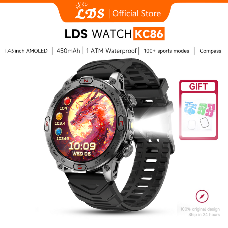 LDS SmartWatch KC86 Round Full Touch Screen Jam Tangan Wanita/Pria Olahraga Android IOS Calories Pedometer Smart Watch