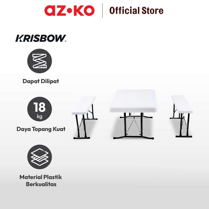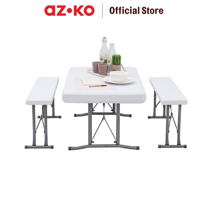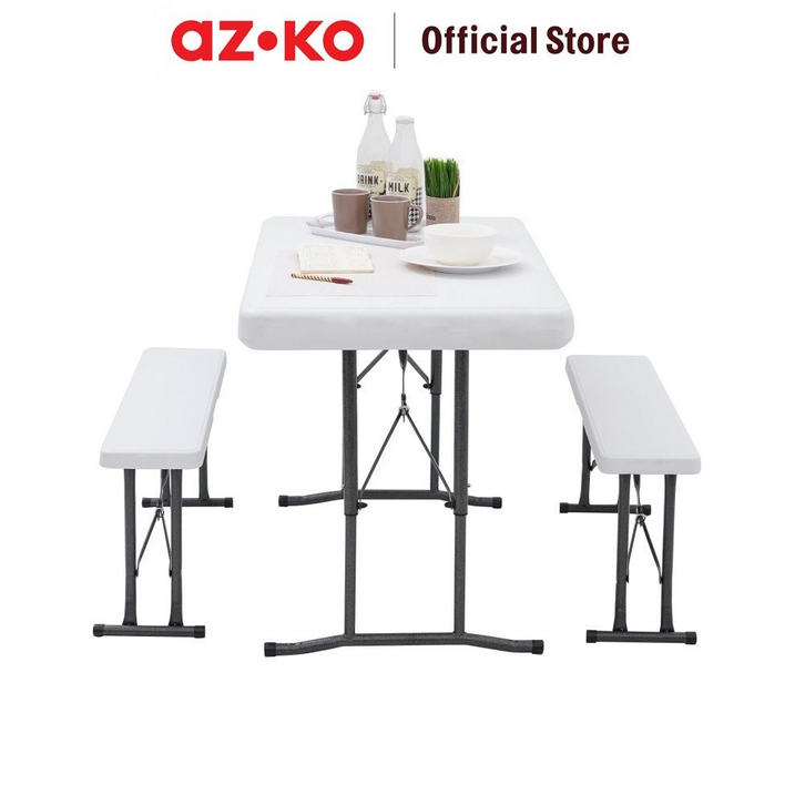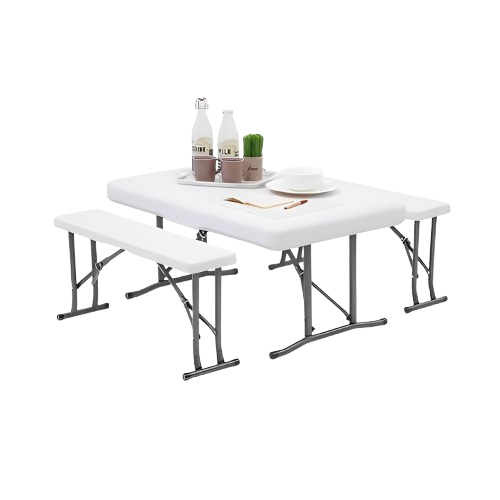 Set Meja & Bangku Bench Lipat - Putih Kursi Dan Meja Taman Foldable Desk And Chair Picnic Table Benches Set Outdor