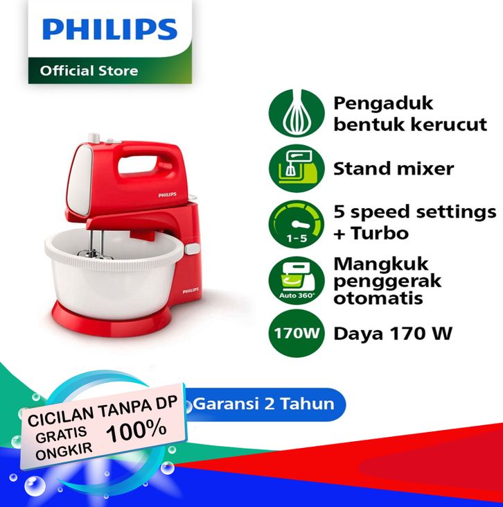 Mixer Philips - 2 Liter - HR1559/10 - Stand Mixer - Mikser Philips - Mixer Pencampur - Mixer Kue - Merah