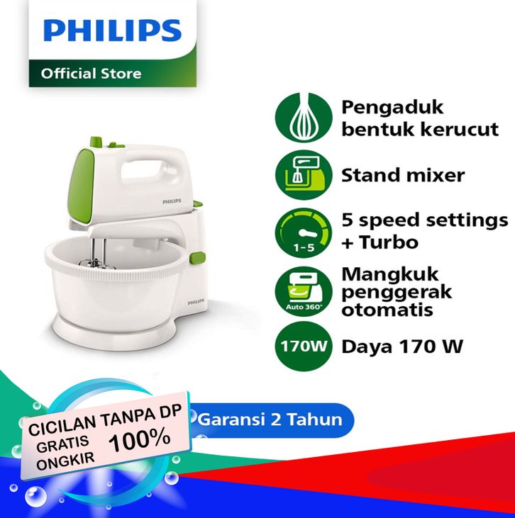 TERLARIS Mixer Philips - 2 Liter - HR1559/40 - Stand Mixer - Mikser Philips -Mixer Pencampur - Mixer Kue - Hijau