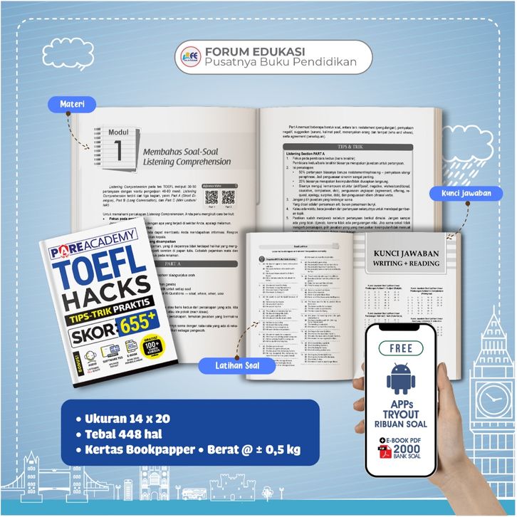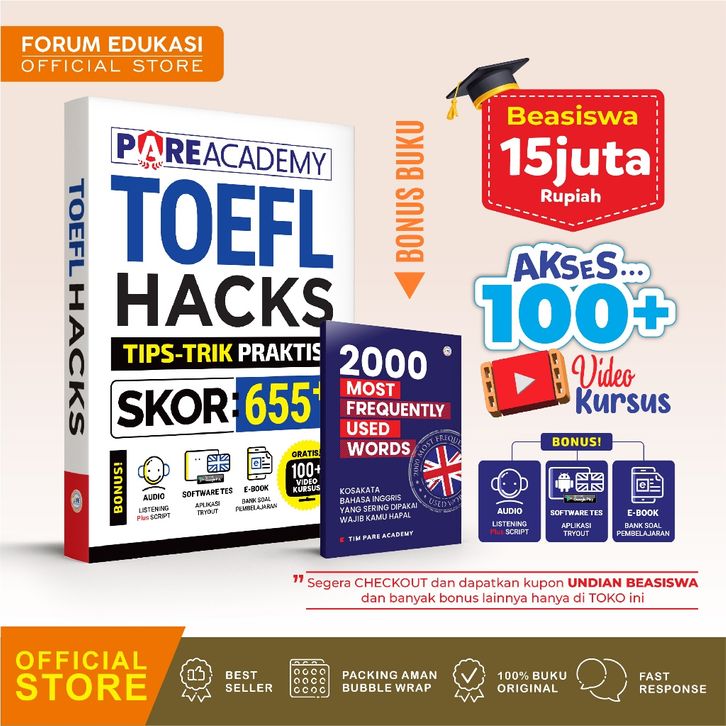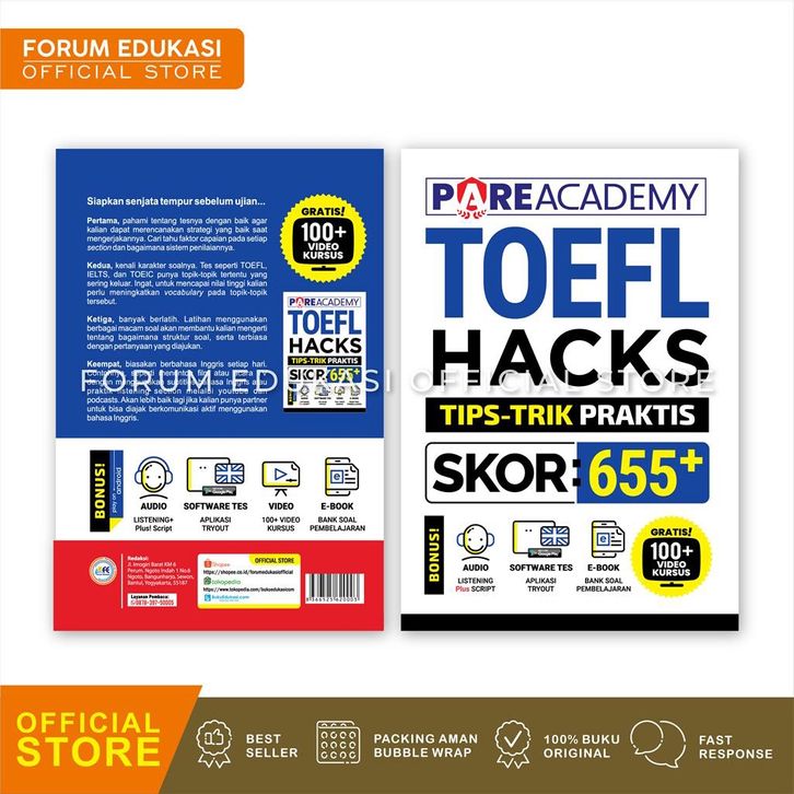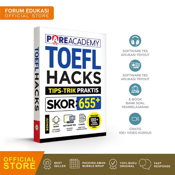 Buku Bahasa Inggris PARE ACADEMY TOEFL HACKS TIPS TRICK PRAKTIS SKOR 655