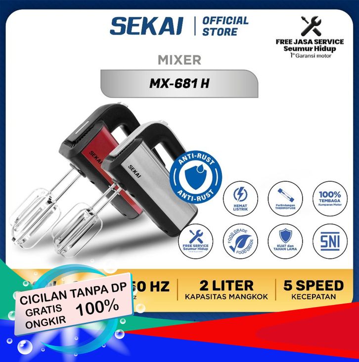 TERLLARIS SEKAI Hand Mixer / Alat Pengaduk Adonan Portable Elektrik / MX 681 H