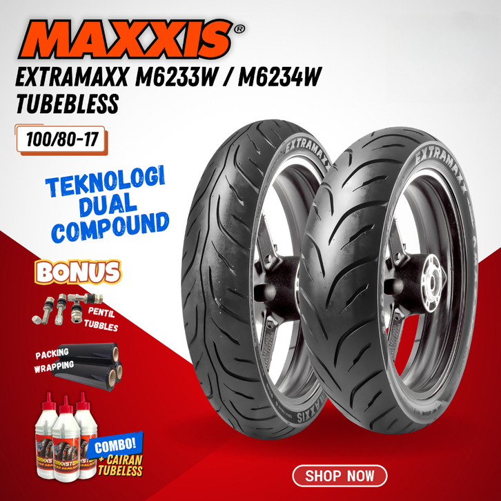 MAXXIS EXTRAMAXX 100 - 80 - 17 / RING 17 / BAN MAXXIS 100/80-17 / 100-80-17 BAN TUBELESS BAN LUAR