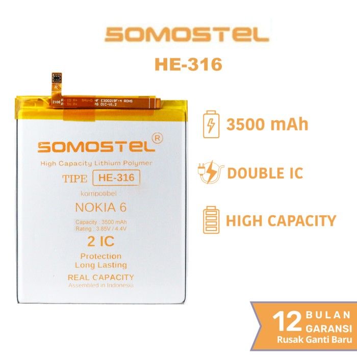 Somostel - HE316 Nokia 6 Batre Batrai Baterai kualitas original