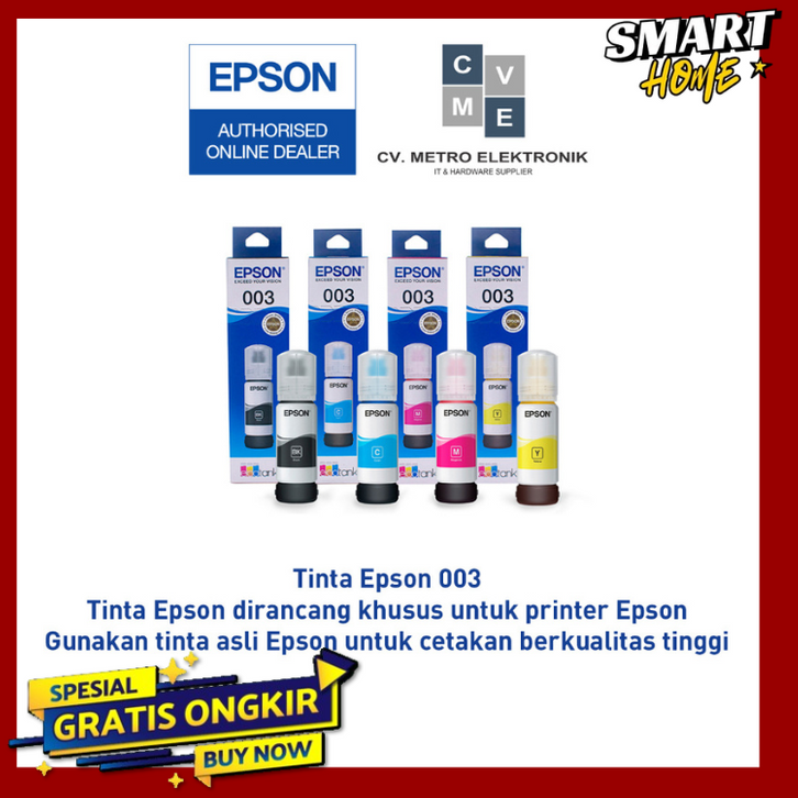 Tinta Botol Epson 003 T003 T-003 L1110 L1210 L1250 L3110 L3210 L3150 L3250 L5190 L5290 L11050 1 SET CYMK ORIGINAL