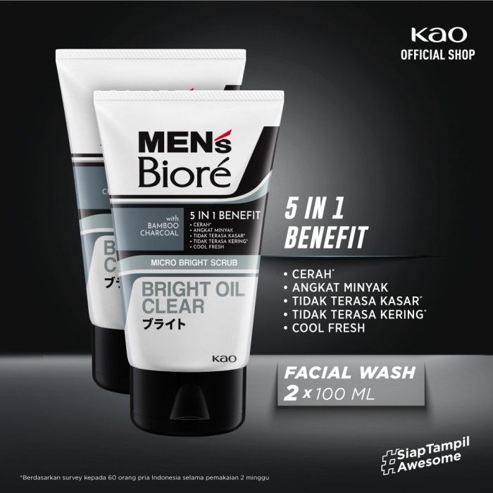 Men's Biore Bright Oil Clear 100gr TwinpaMen's Biore Bright Oil Clear 100gr Twinpack - Sabun ck - Sabun Muka DoubleScrub