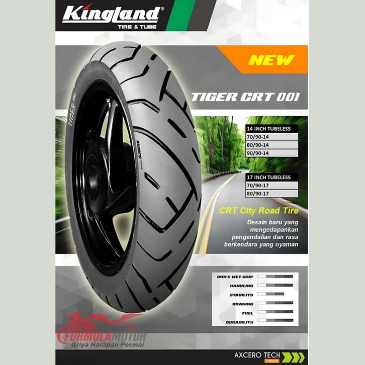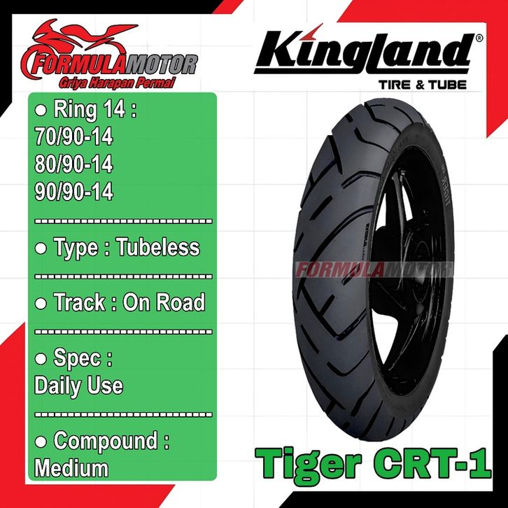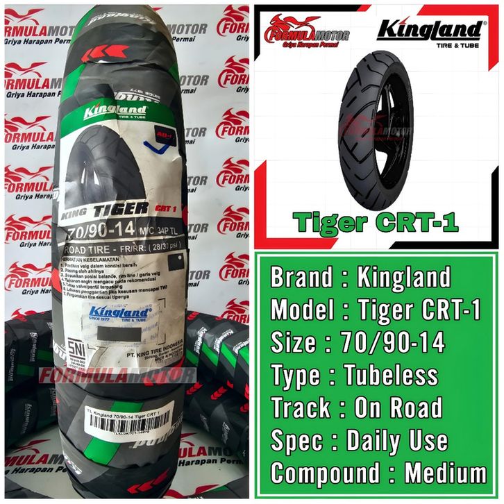Kingland Tiger CRT Uk 70/90-14 Tubeless - Ban Luar Motor Matic Mio, Xeon, Spin, Nex-1 Depan Ring 14 Original Baru