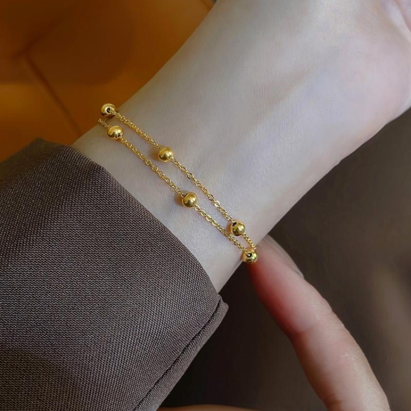 (FLASH SALE) Gelang titanium anti karat lapis ganda bola untuk wanita cocok untuk dipakai sehari-hari