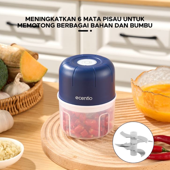 Blender Bumbu Mini Chopper 250ml – Portable USB Type C, 6 Pisau, Gilingan Mini Bumbu, Blender Travel Multifungsi