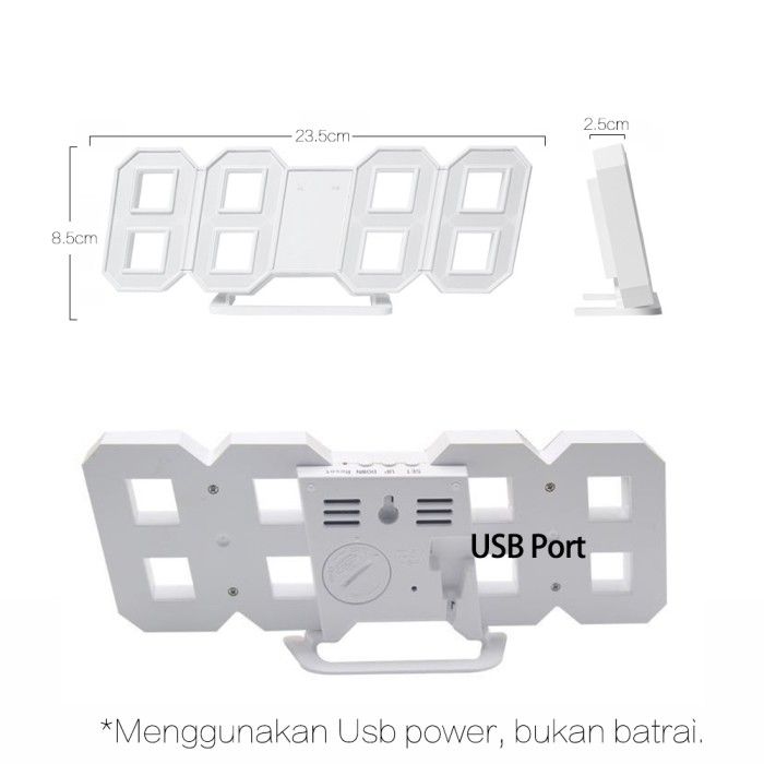 Jam Dinding Digital 3D Clock LED Meja Movistar Case Putih