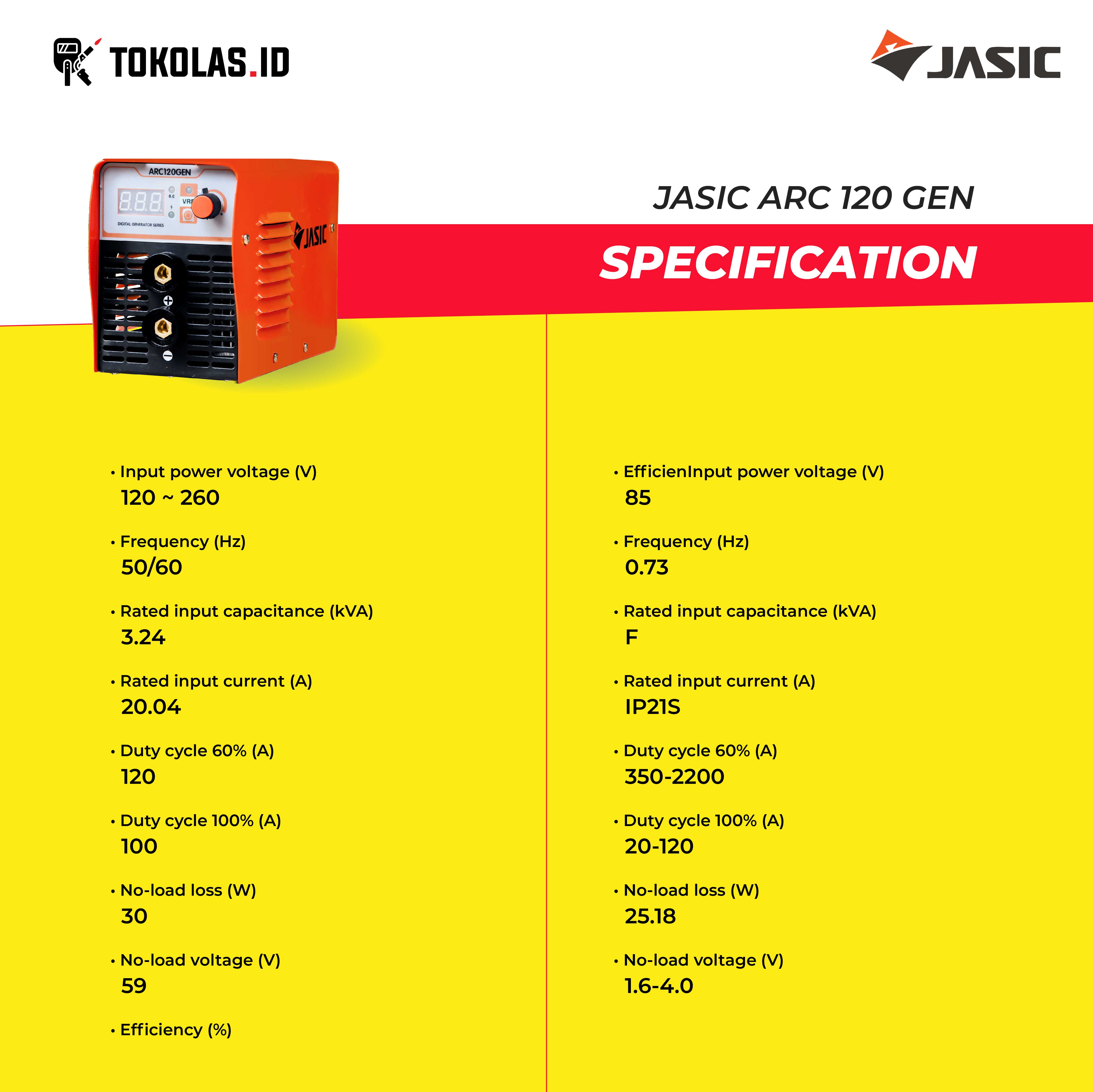 Mesin Travo Trafo Las MMA Stick Inverter Welding Jasic ARC 120 GEN Ampre 900 Watt Genset Generator