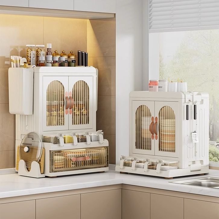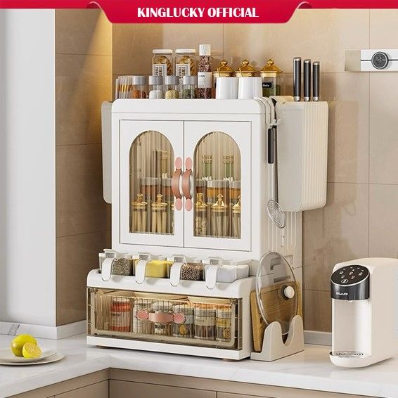 Rak Bumbu Dapur Estetik Model Lemari Mewah Kitchen Organizer Tertutup Seasoning Rack