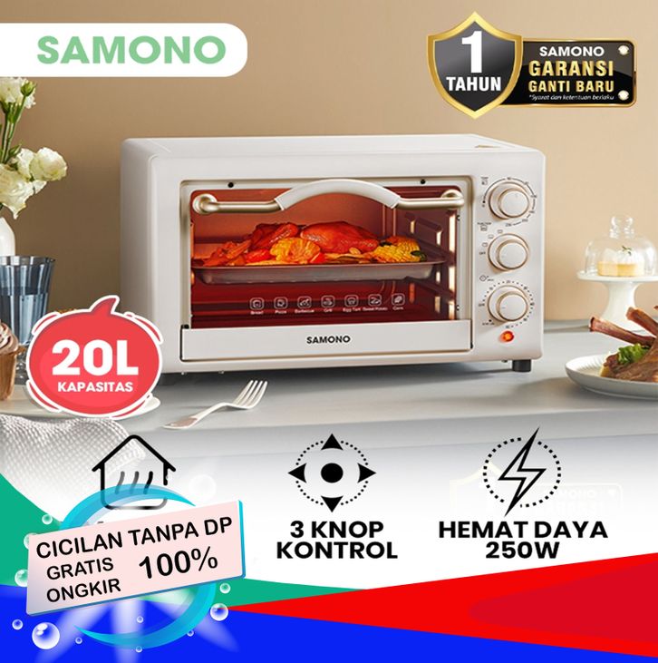 SAMONO Elektrik Oven 20 Liter Api Atas Bawah Hemat Daya 3 Knob Control Garansi Resmi 1 Tahun SW-EOW20