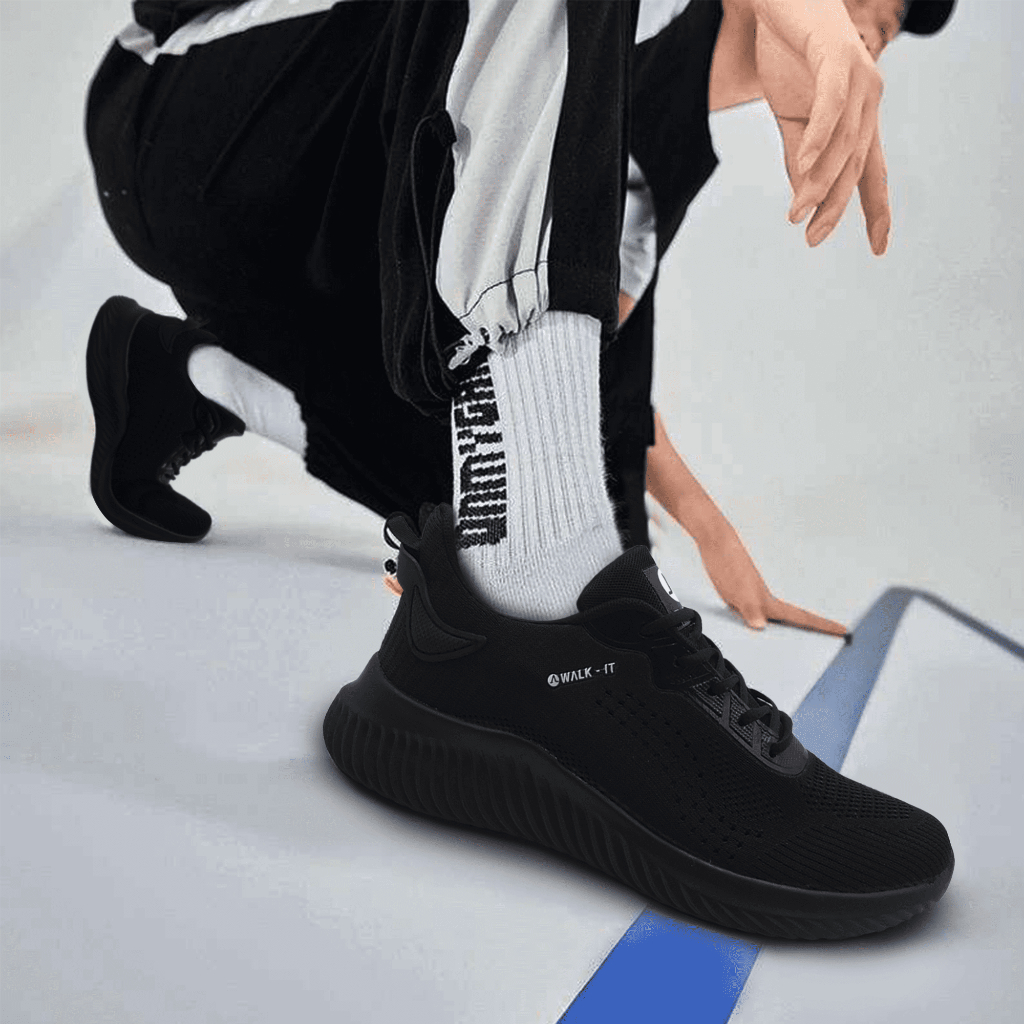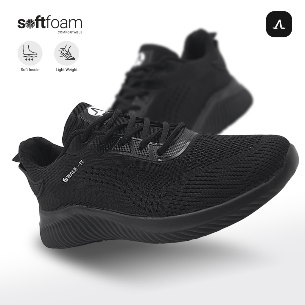 Walk It Sepatu Sekolah Hitam Polos Sepatu Sneakers Running Gym Shoes Full Black Size 39-44 - FLOAT01